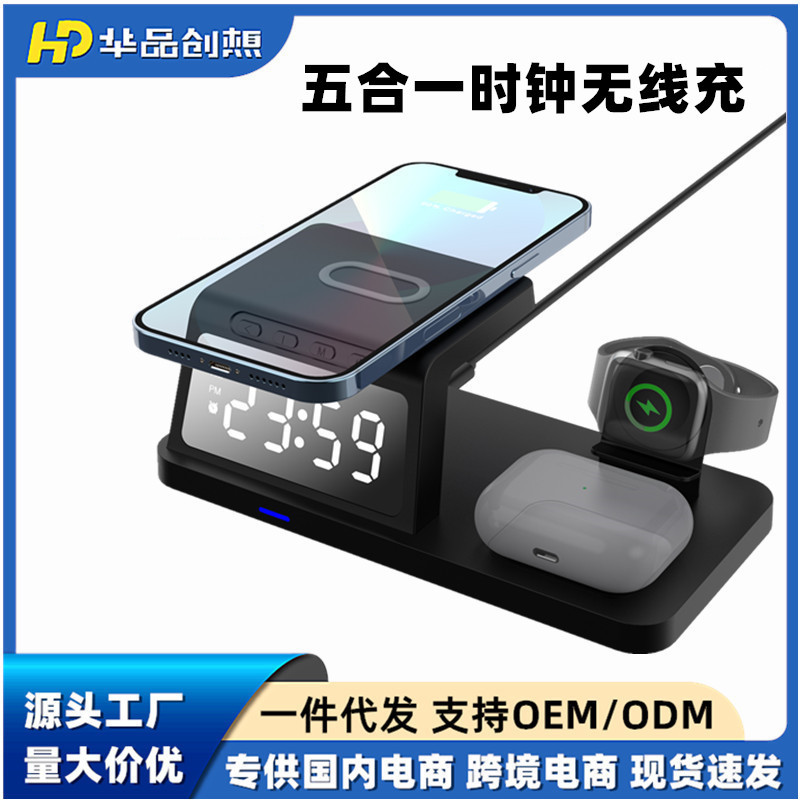 クロスボーダー四合一無線充電器デスクトップ時計15w速充イヤホン腕時計携帯電話デスクトップ無線充電