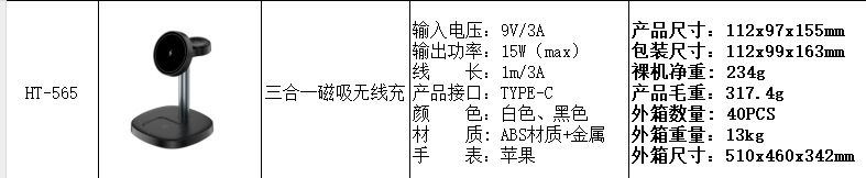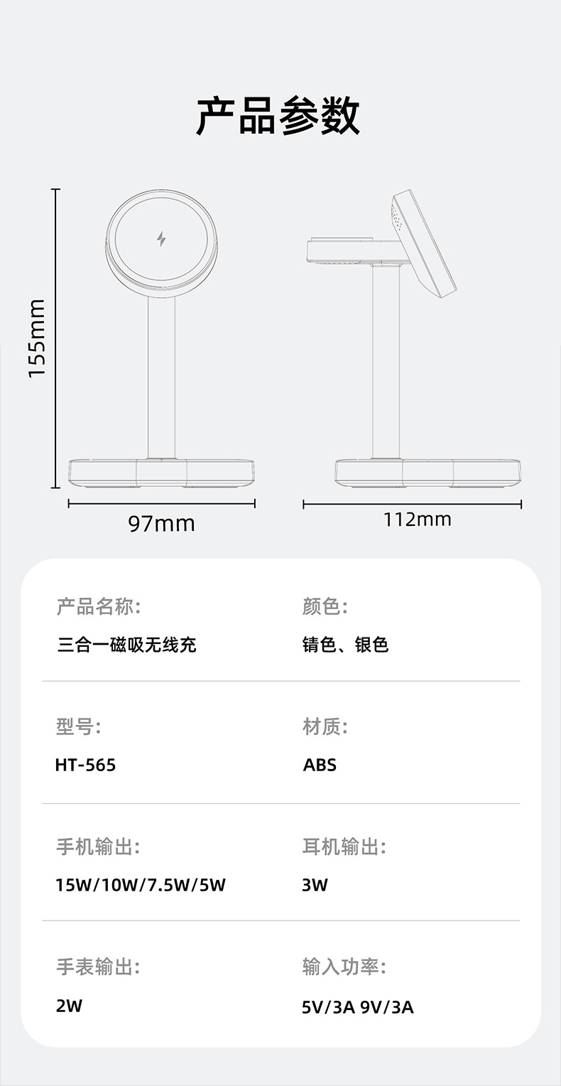 3-in-1 ワイヤレス充電器は、Huawei 携帯電話のワイヤレス充電、携帯電話スタンド、デスクトップ Apple 磁気スタンドに適しています。
