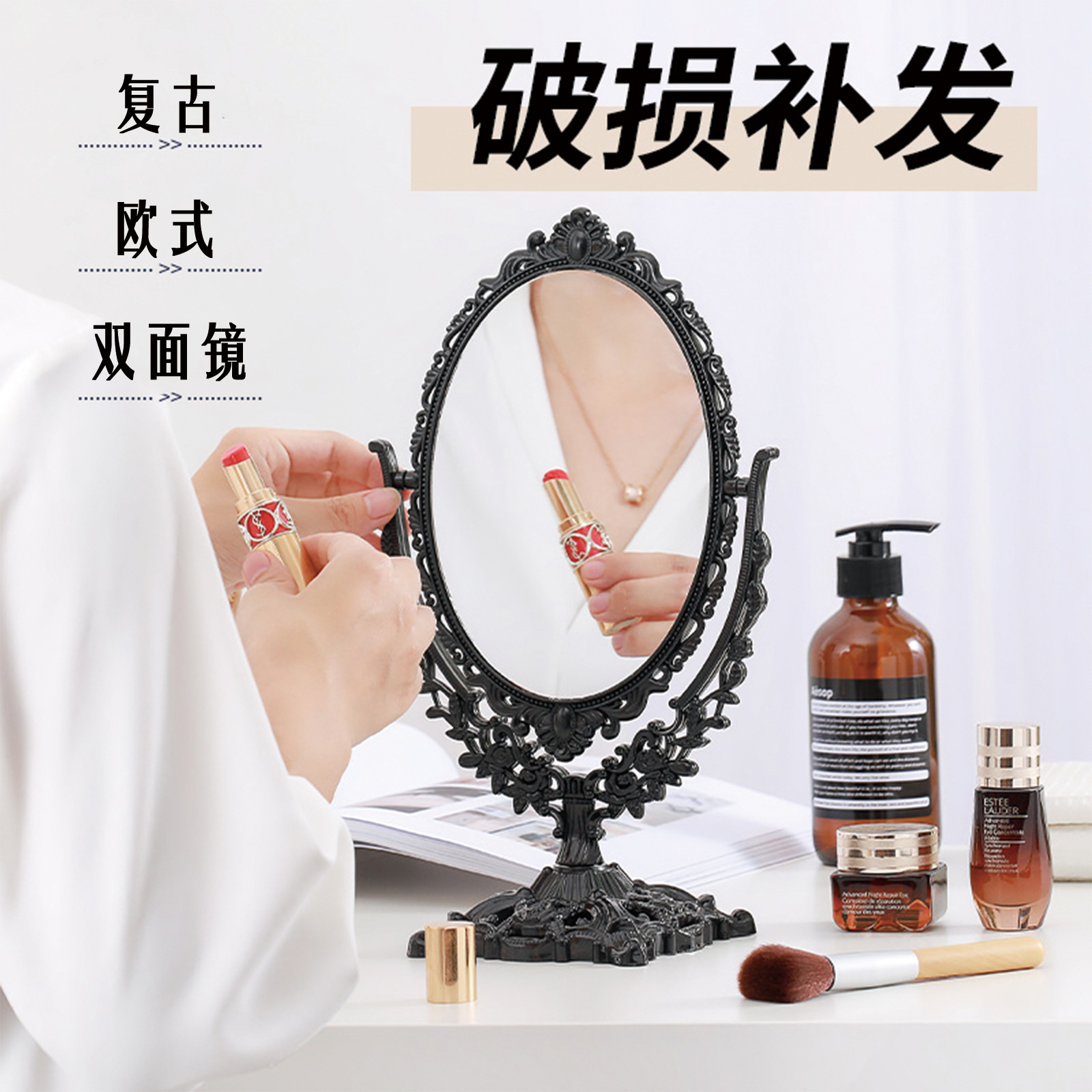 复古化妆镜桌面家用双面宫廷风台式可旋转欧式雕花化妆镜放桌子上