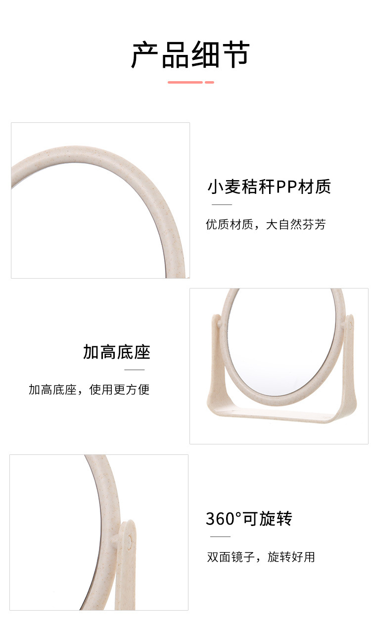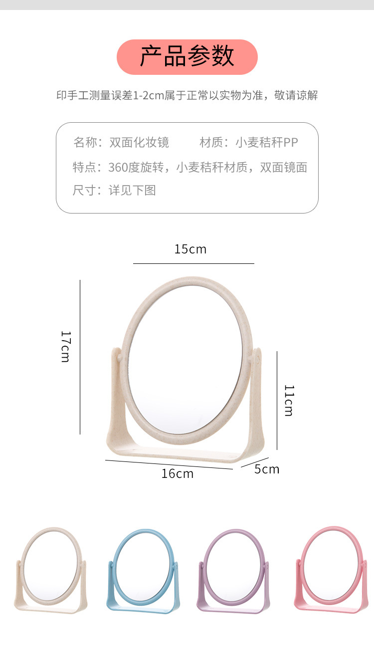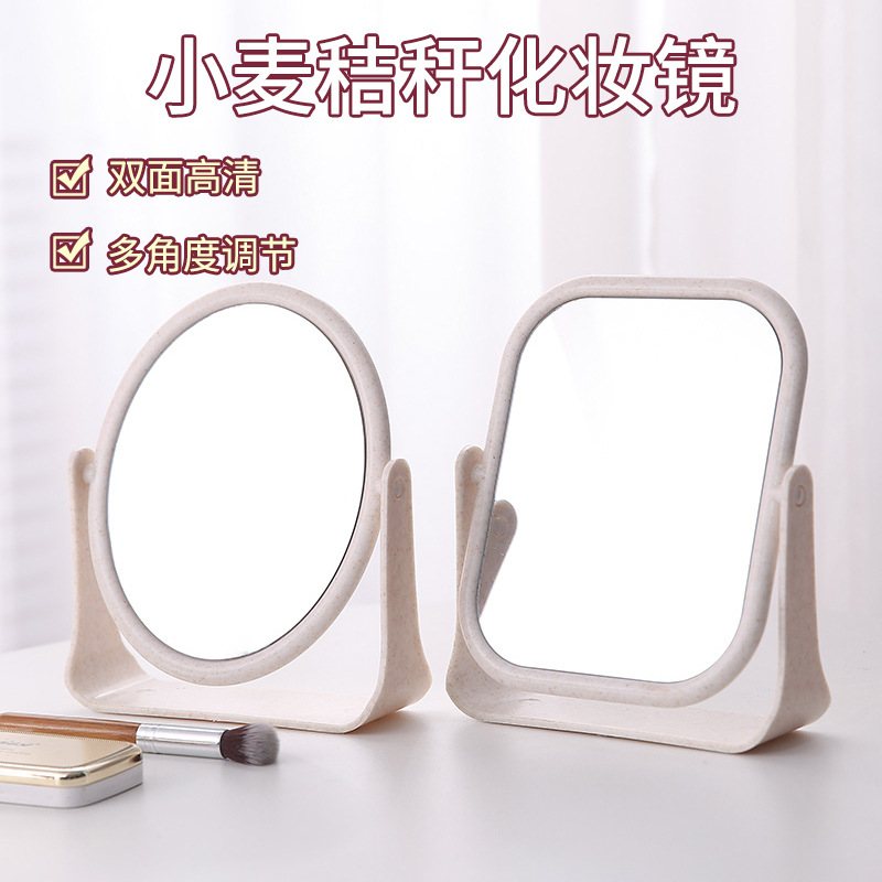 TEMU贴标代发简约桌面镜双面镜子家用可立宿舍学生化妆镜在桌子