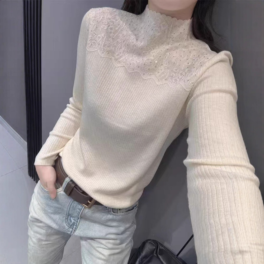 羊绒毛衣女2025新款秋冬半高领打底衫加厚蕾丝内搭针织衫纯色上衣