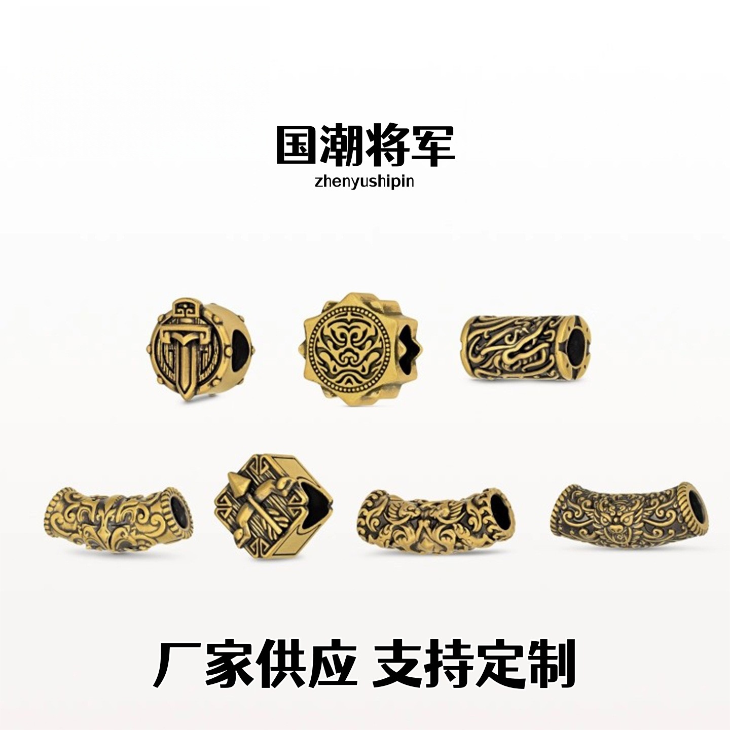 沙金保色真空电镀国潮将军战铠神兽手串转运珠黄金色手链配件男
