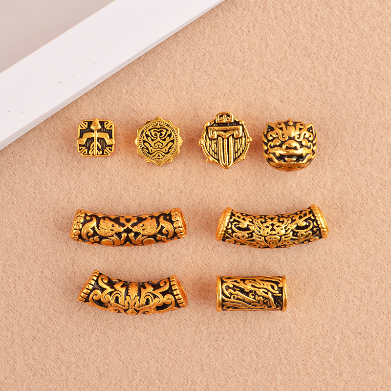 沙金饕餮纹转运珠手链镀24k仿黄金色貔貅diy配件串珠通孔手绳手饰