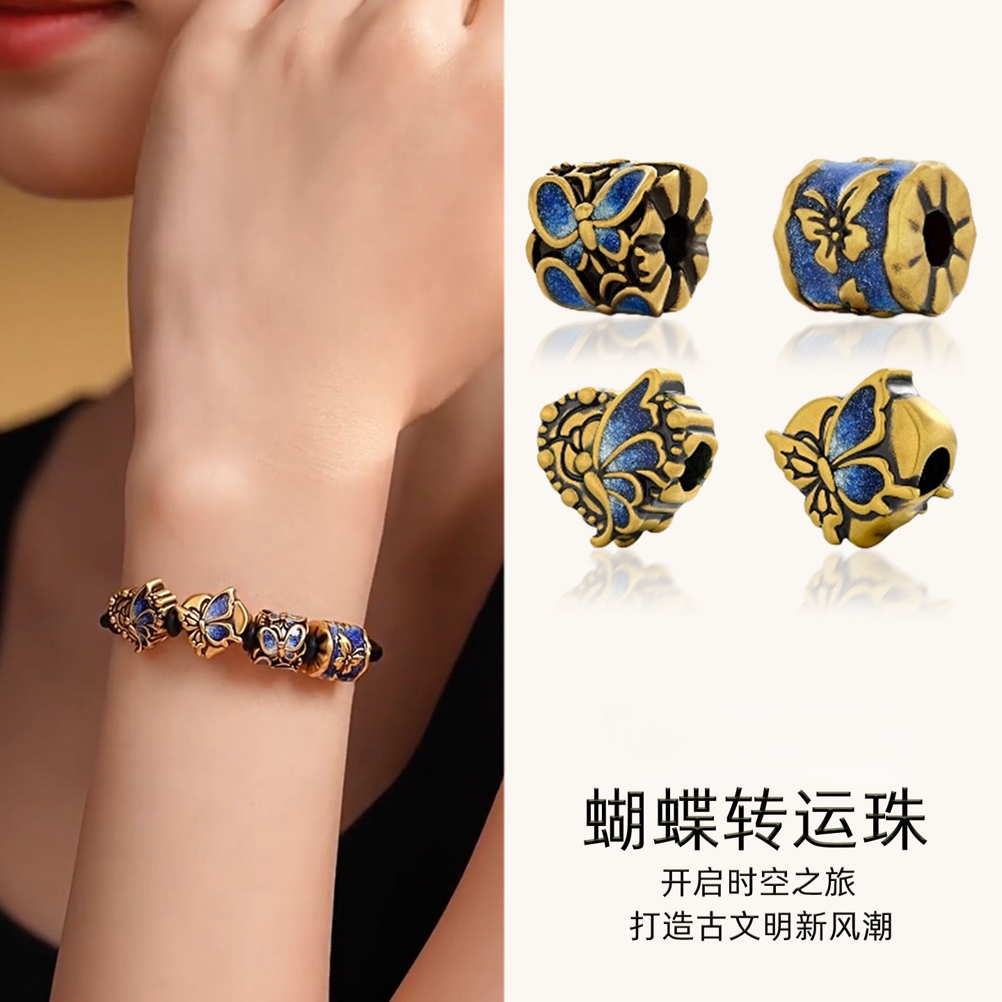 臻玉镀24k鎏彩蝴蝶转运珠沙金配件手链复古黄金色DIY串珠散珠手绳