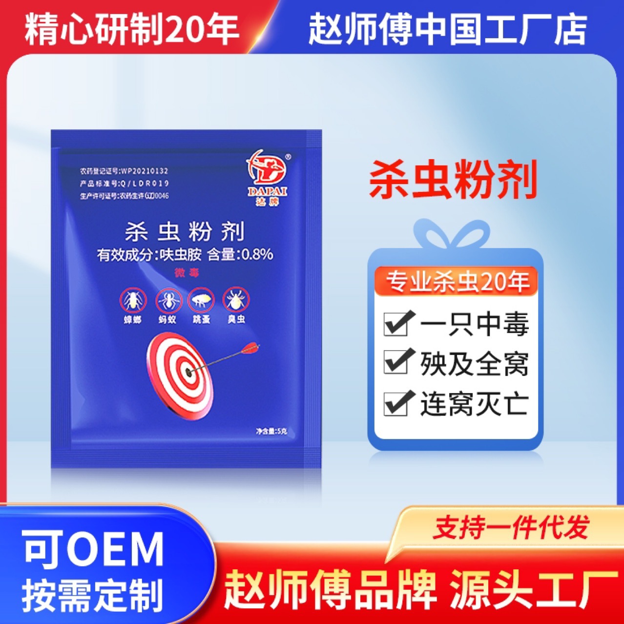 Dapai ゴキブリ薬物デチルネジミドゴキブリ粉末卸売全巣家庭用屋内ゴキブリ薬物粉末ドロップシッピング