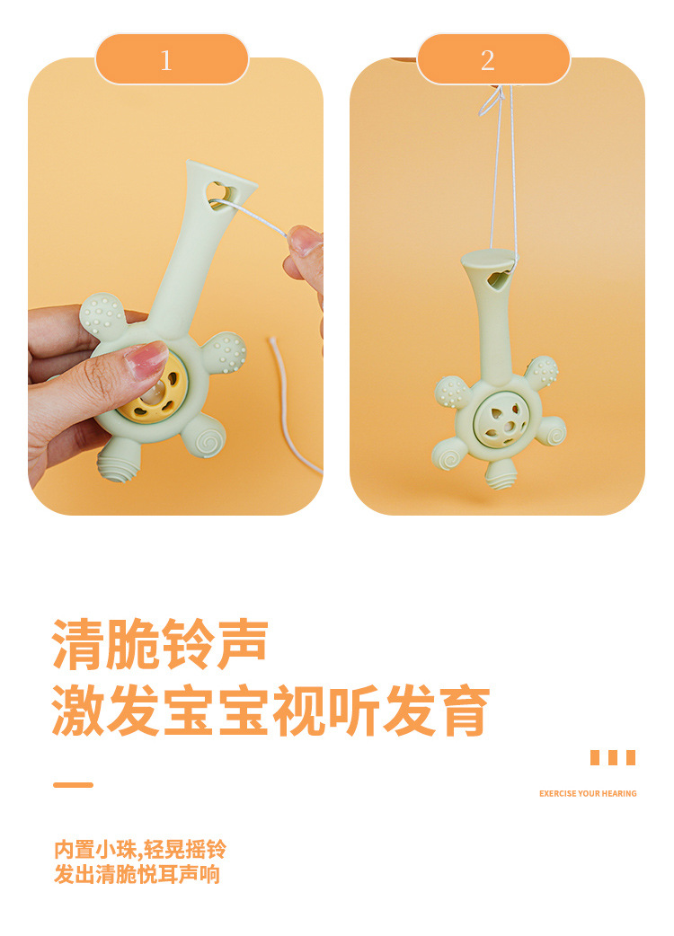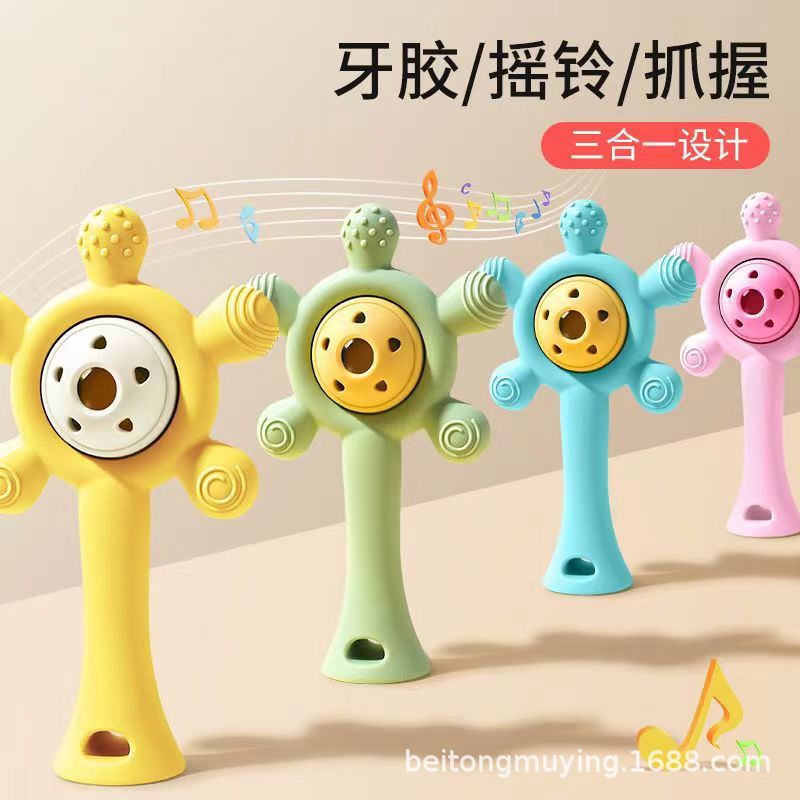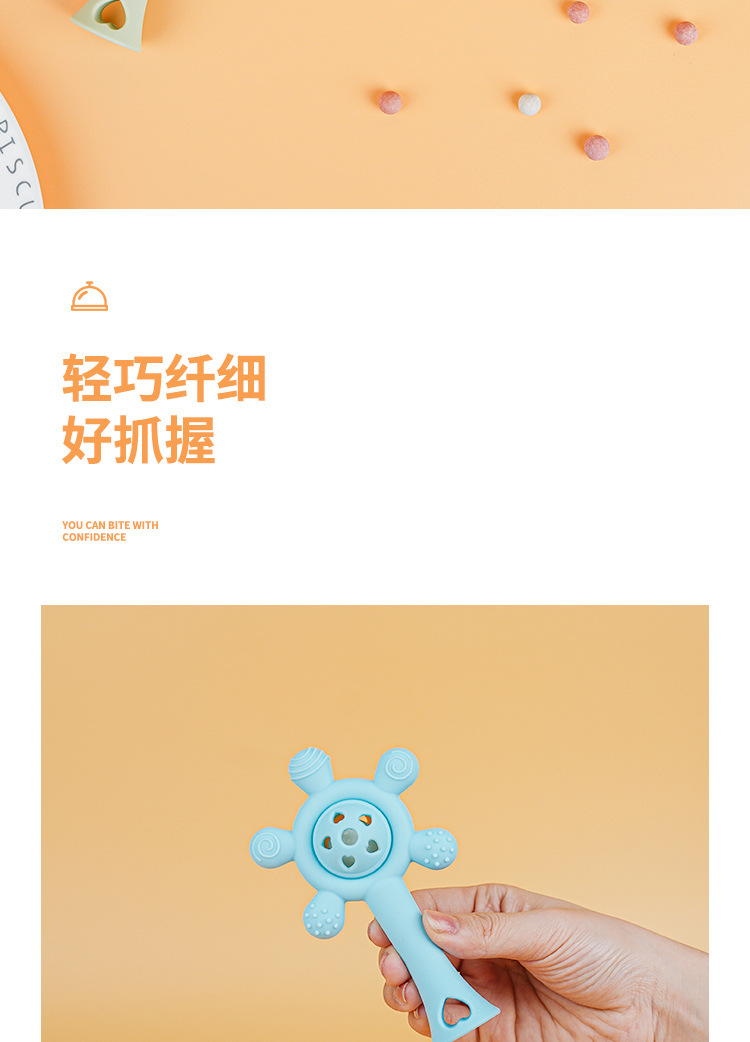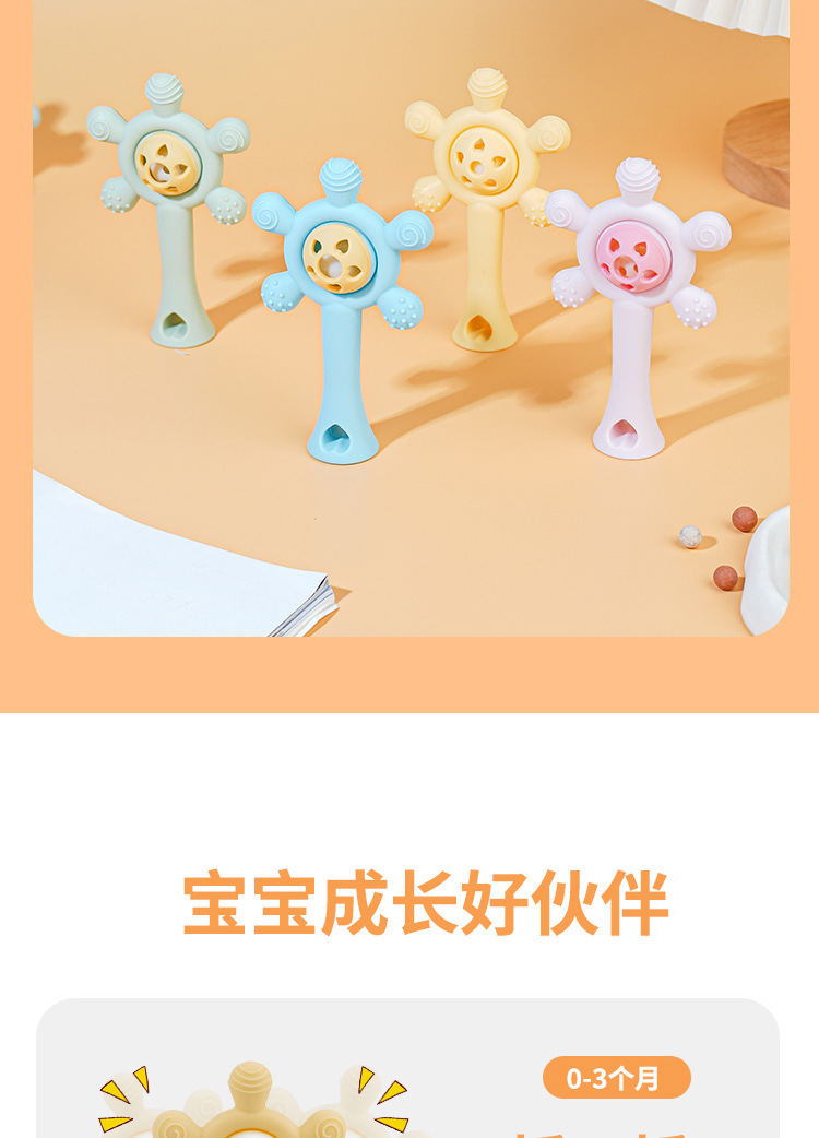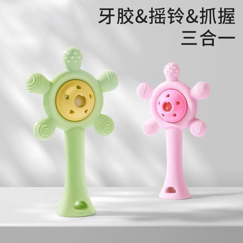 婴儿益智早教手摇铃牙胶出牙期磨牙棒安抚硅胶玩具防吃手铃铛咬咬