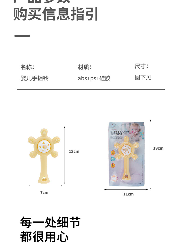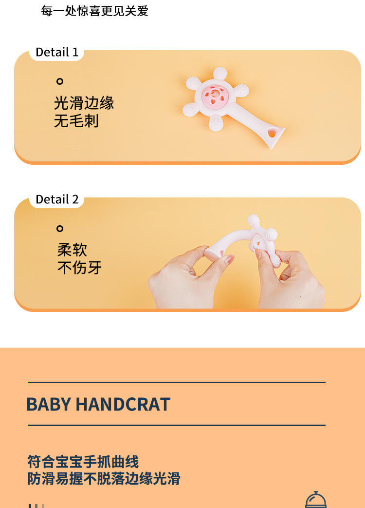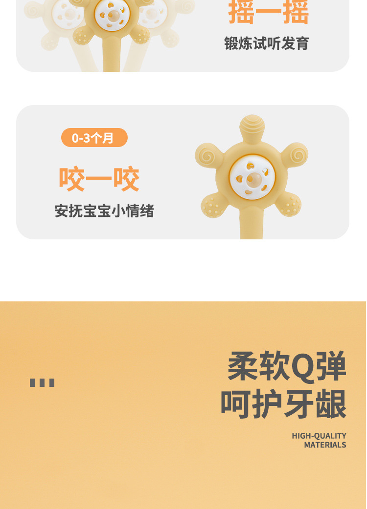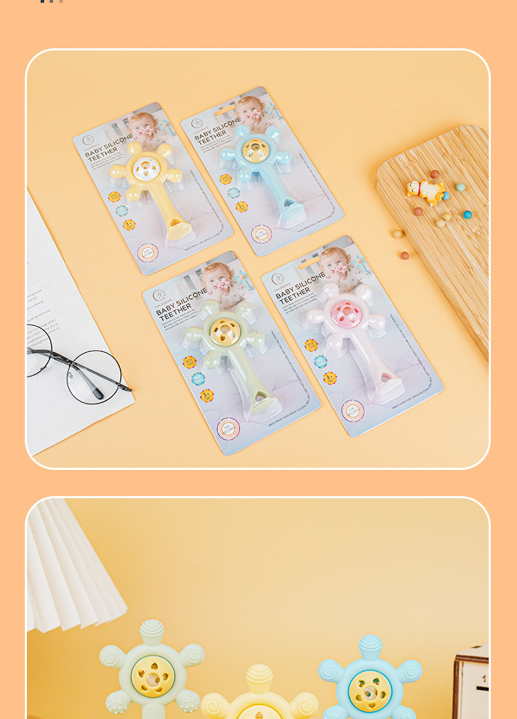 婴儿益智早教手摇铃牙胶出牙期磨牙棒安抚硅胶玩具防吃手铃铛咬咬
