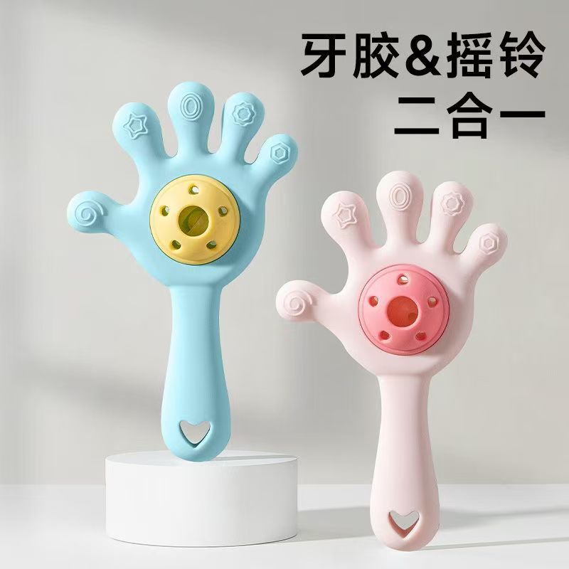 婴儿牙胶宝宝磨牙棒手摇铃玩具手掌硅胶咬咬乐可水煮防吃手安抚