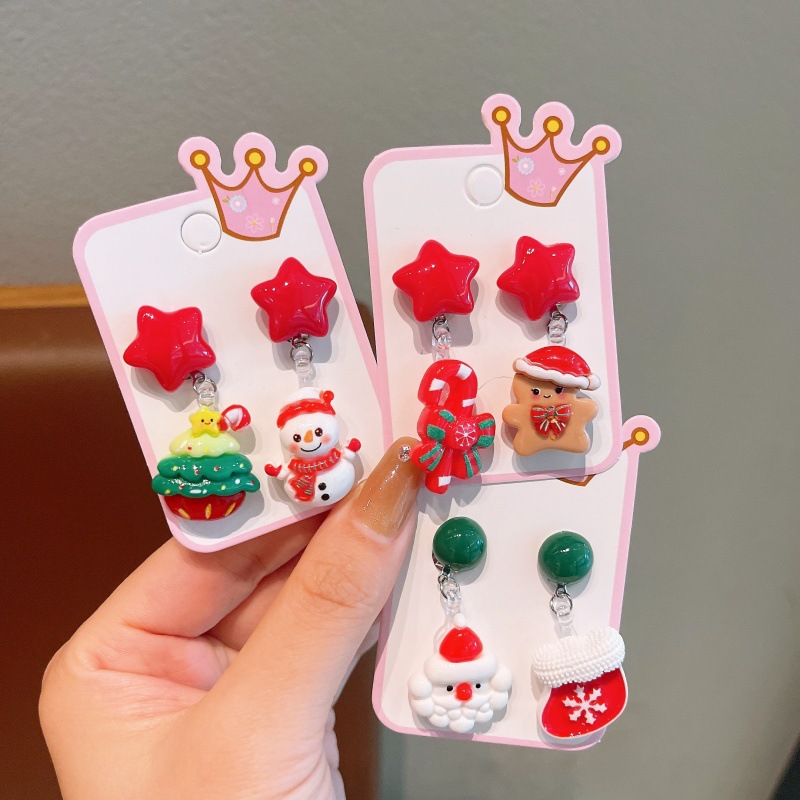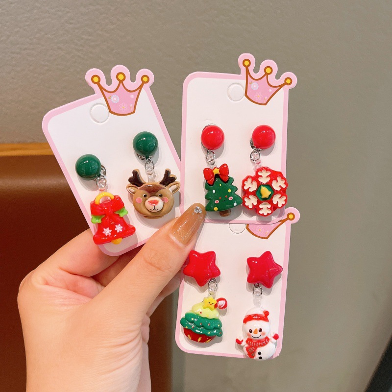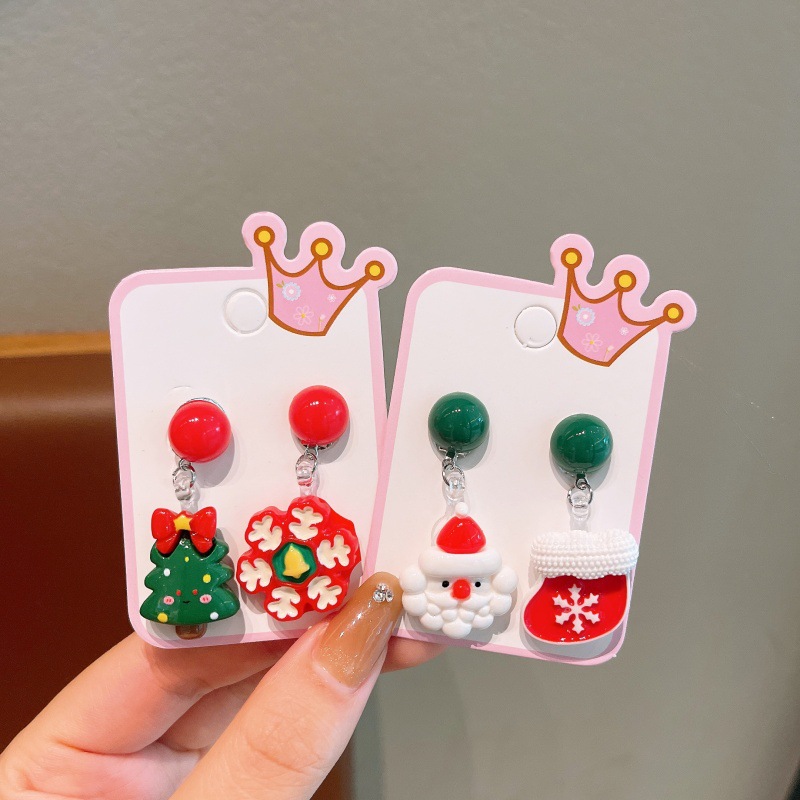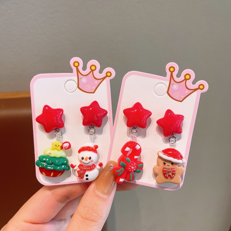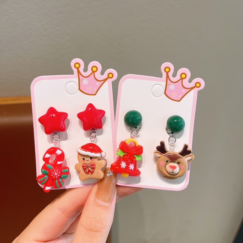 韩版新款儿童假耳环女孩圣诞系列吊坠防痛耳夹女童可爱甜美耳环
