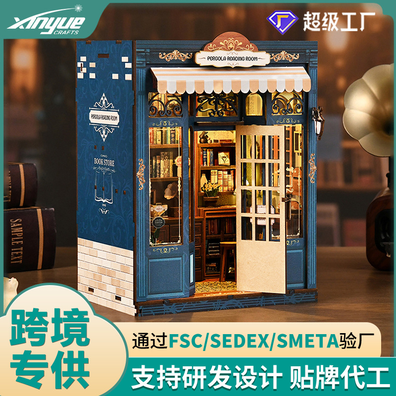 新しいDIY小屋「夢の書斎」ブックスタンド木製手作り組み立てモデルハウス越境クリエイティブギフトDIYブックスタンド