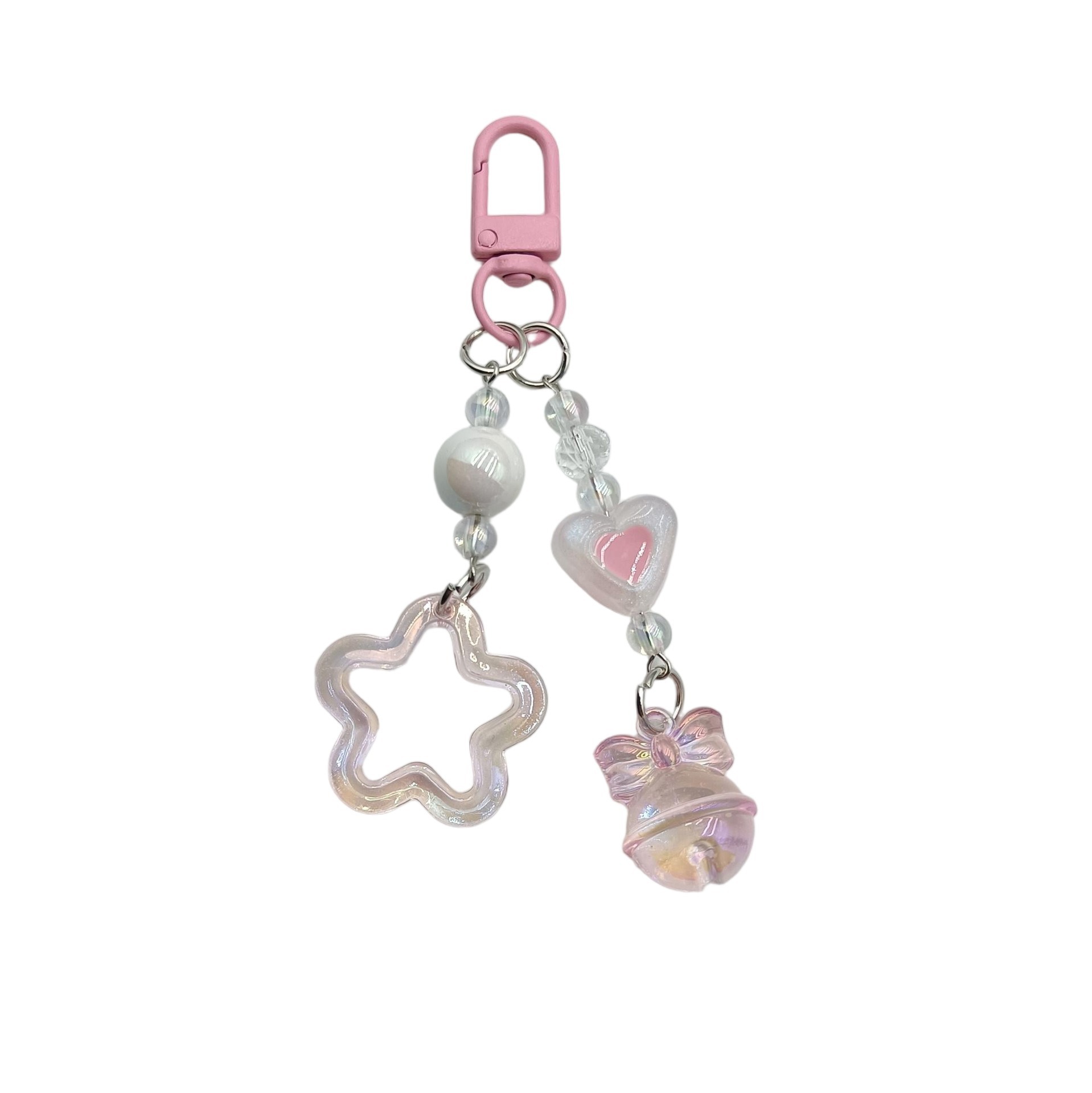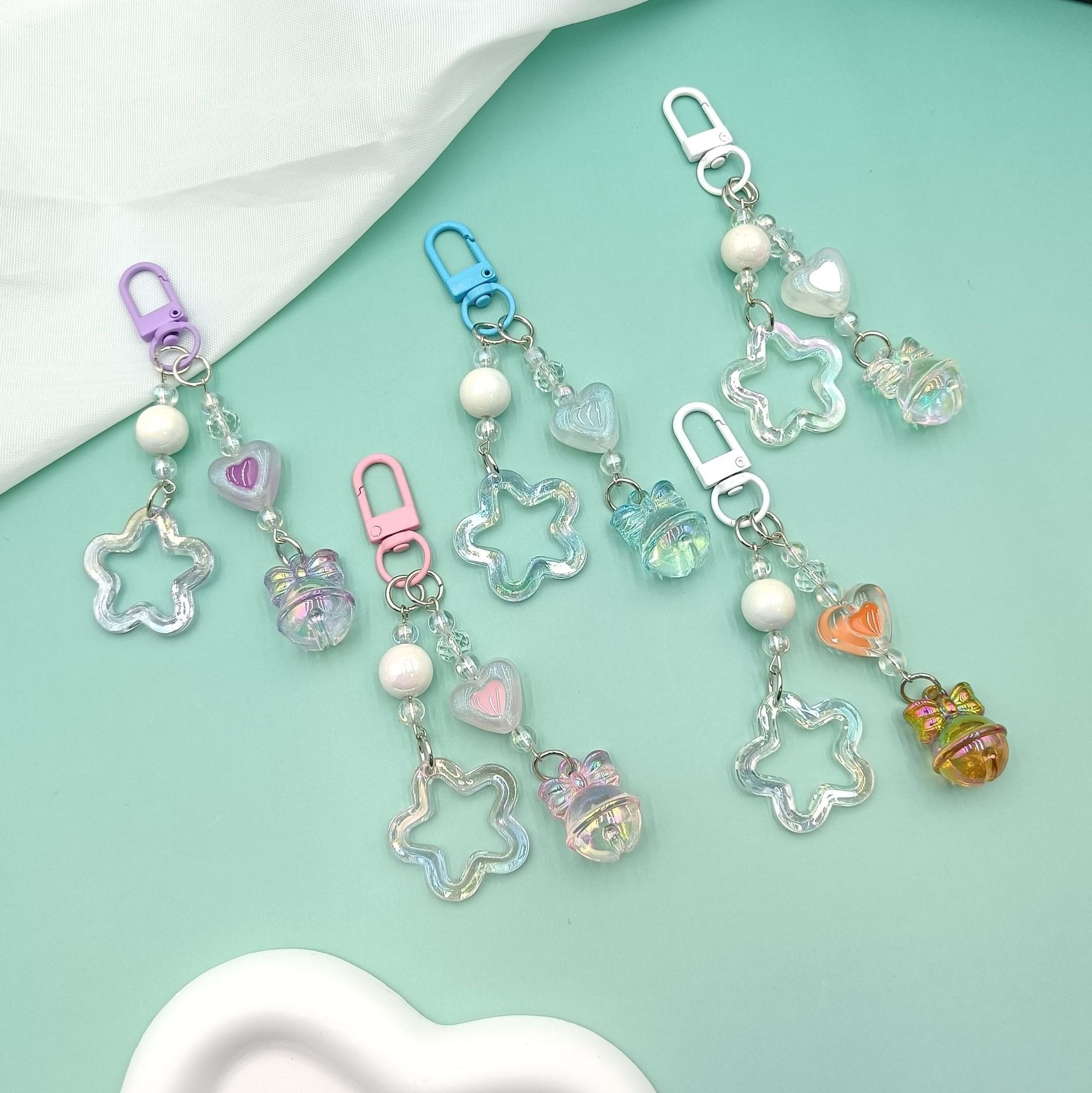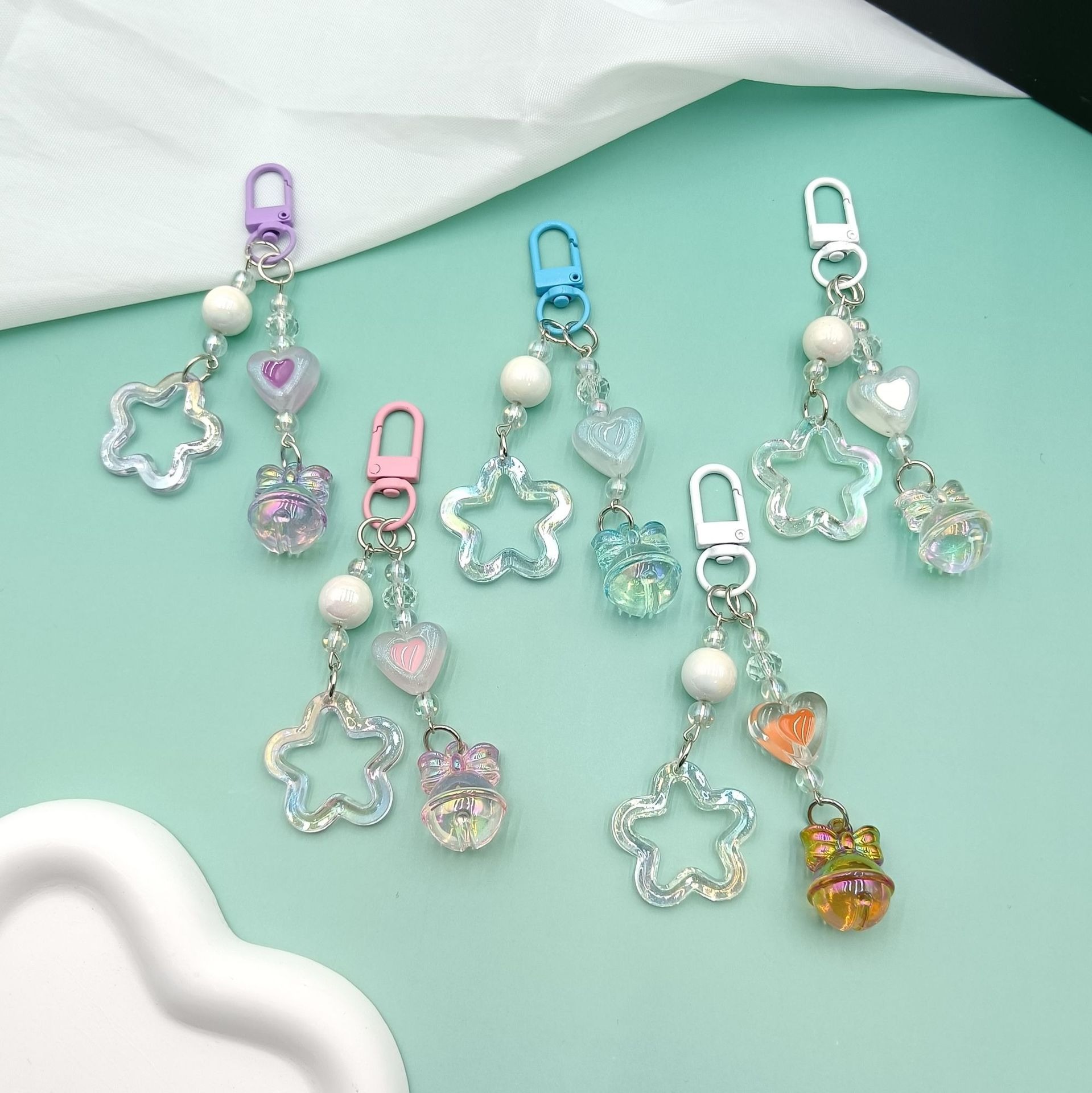 新款闪粉镂空亚克力五角星汽车钥匙扣挂件奶油双色铃铛配件包配饰