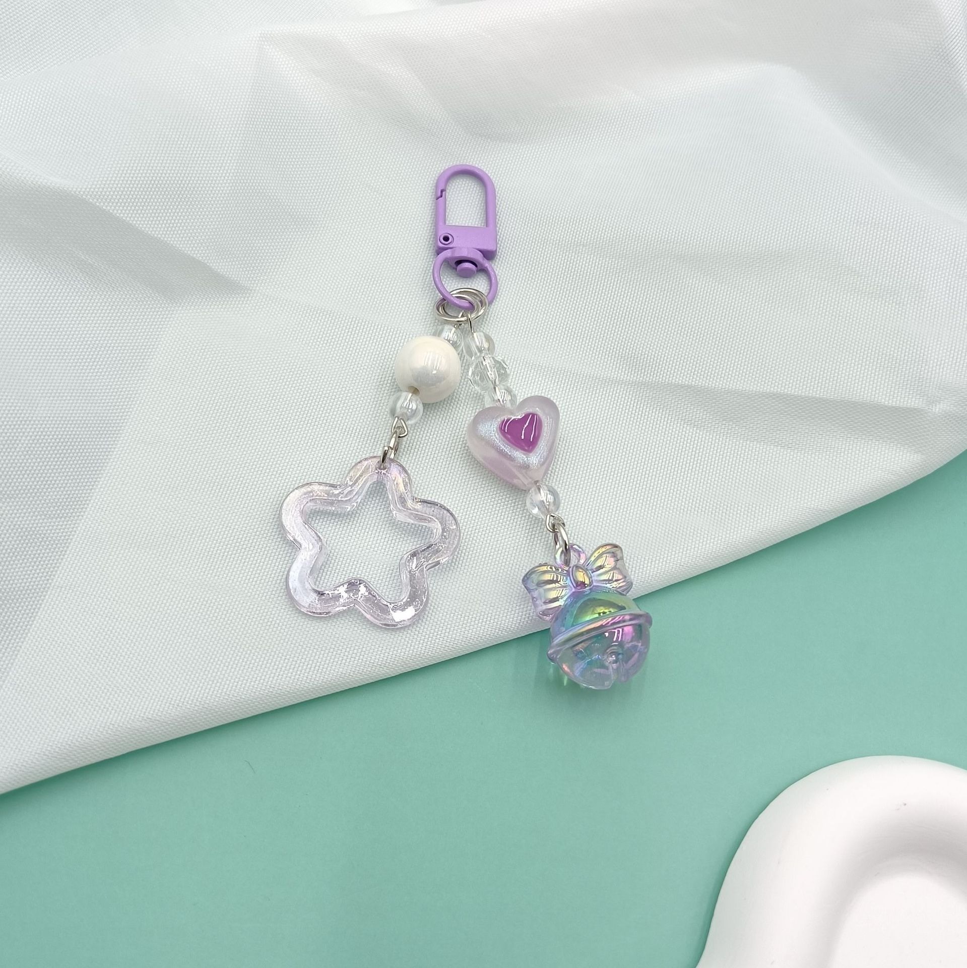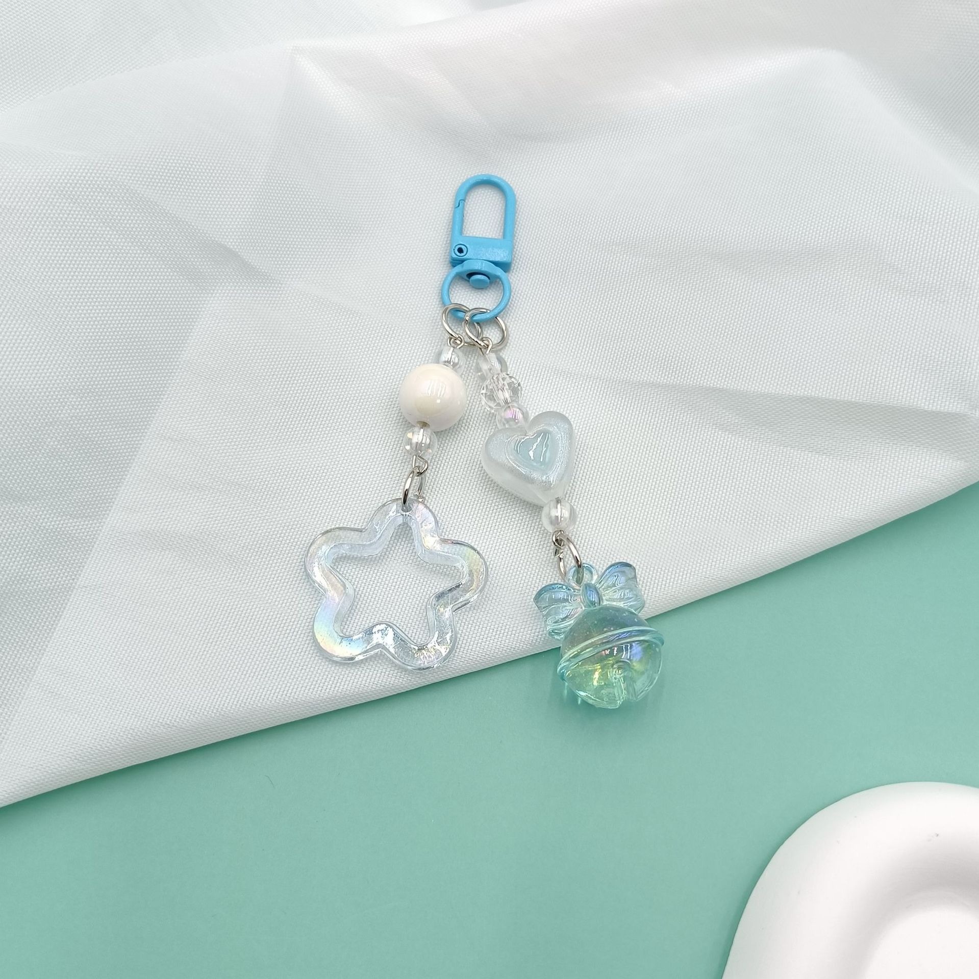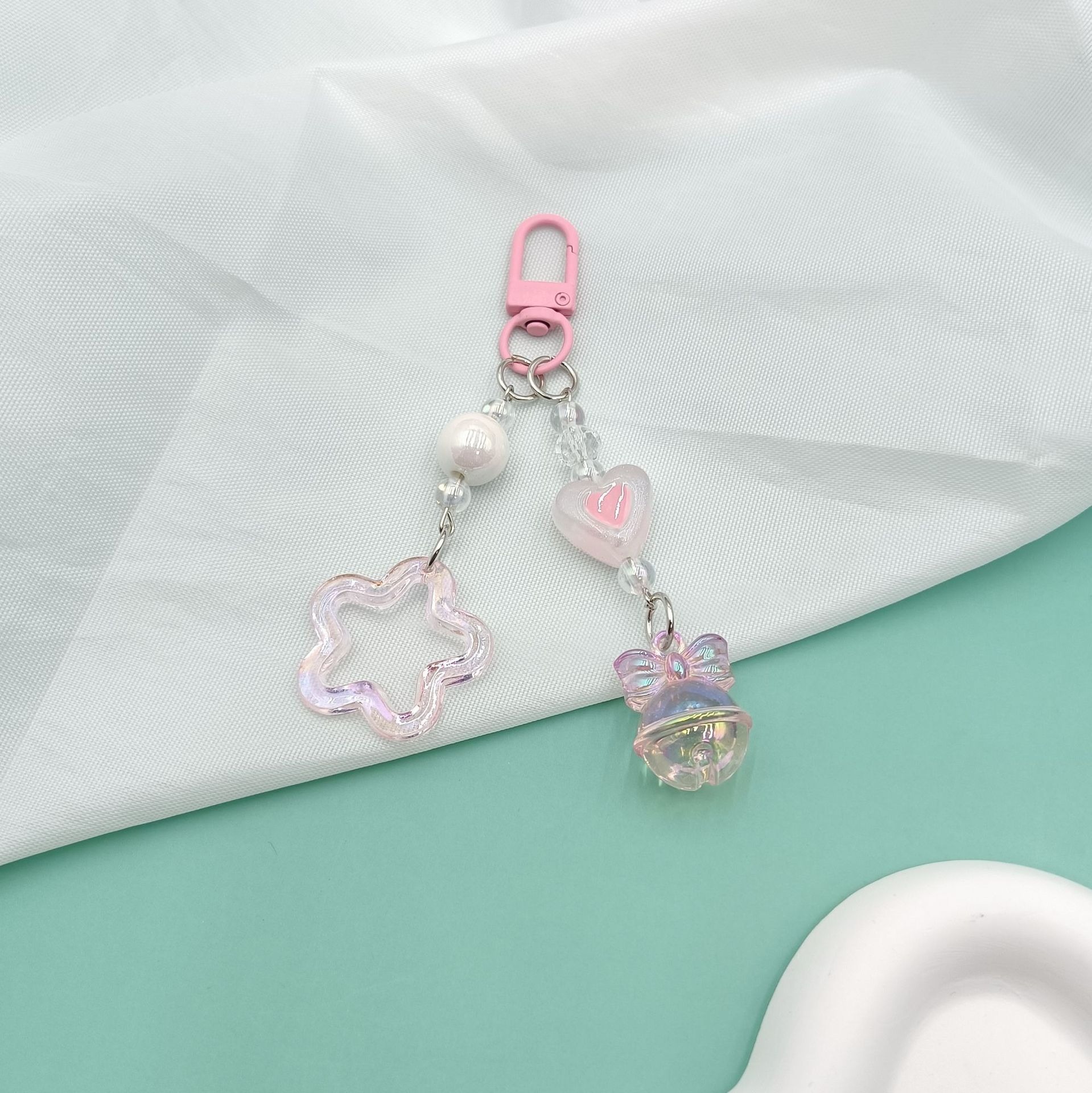 新款闪粉镂空亚克力五角星汽车钥匙扣挂件奶油双色铃铛配件包配饰