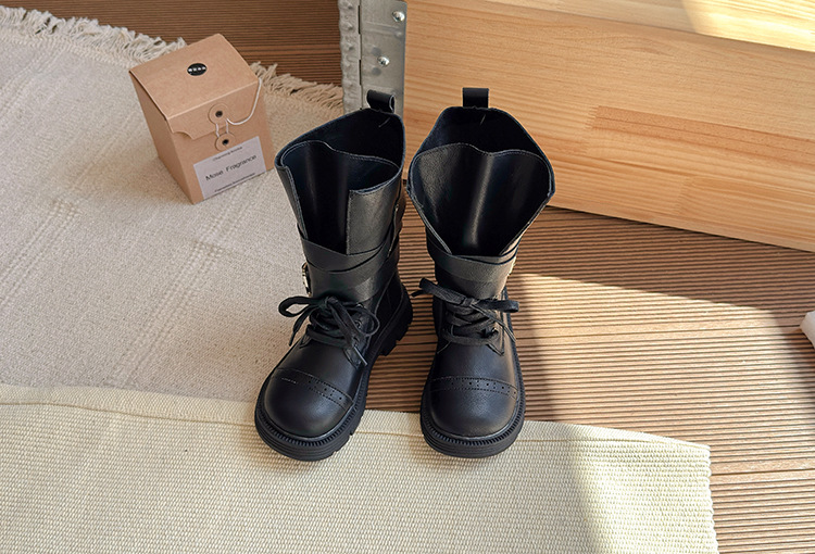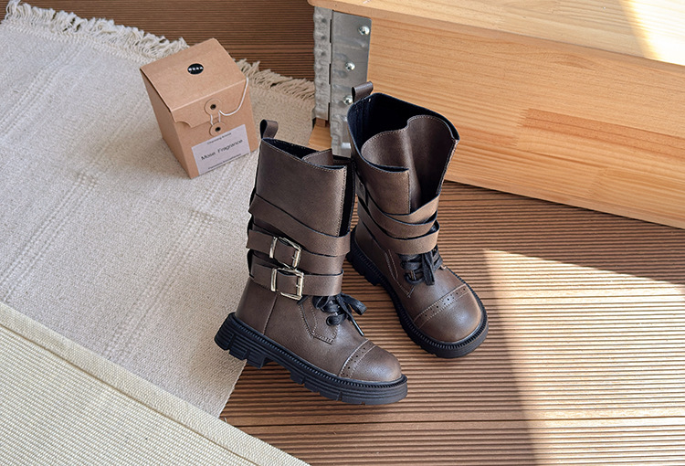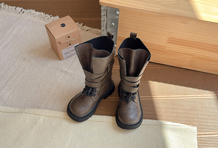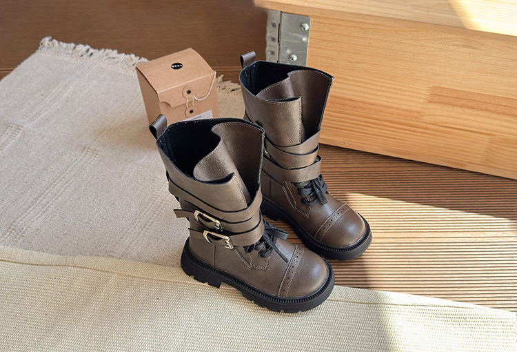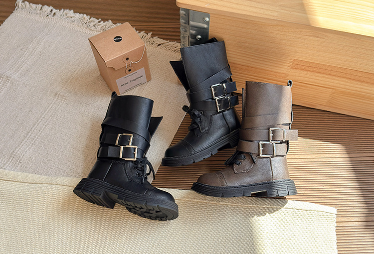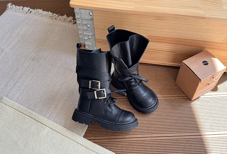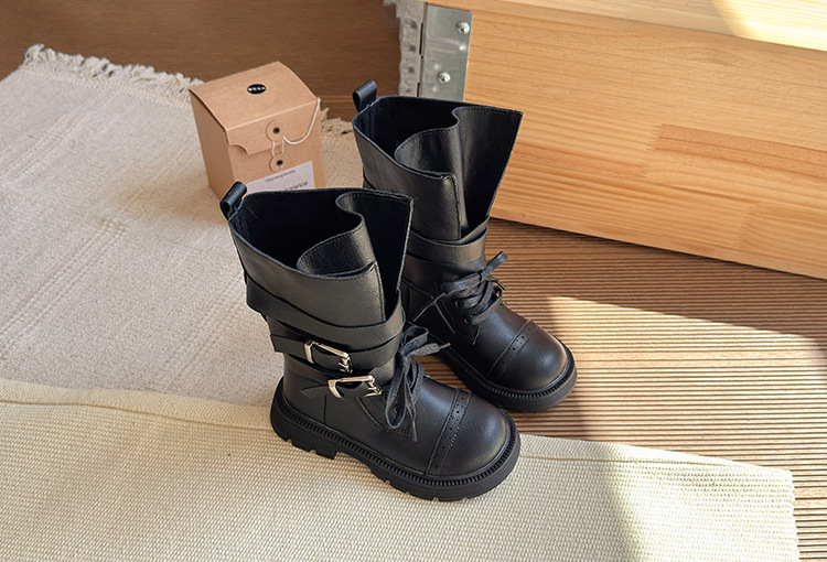女の子用ブーツ 2025年秋新作 メタルバックル付き子供用ロングブーツ バックジッパー付き子供用マーティンブーツ 子供用ブーツ