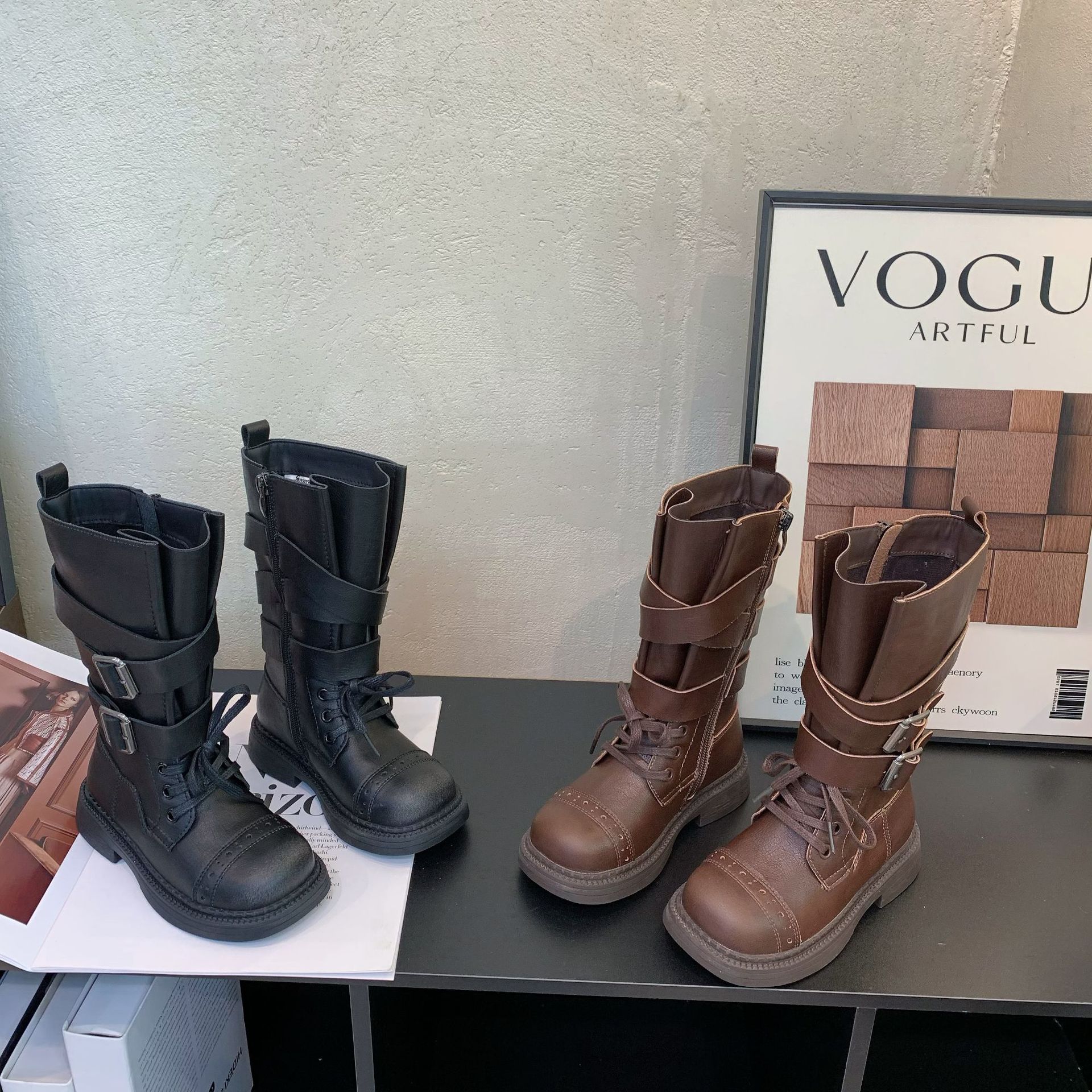 ins复古美拉德长靴2025秋冬季新款韩版女童厚底皮带扣高筒时装靴