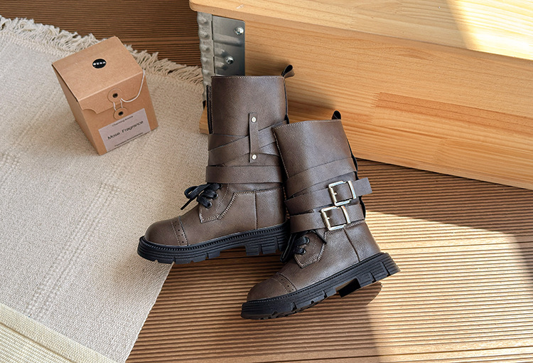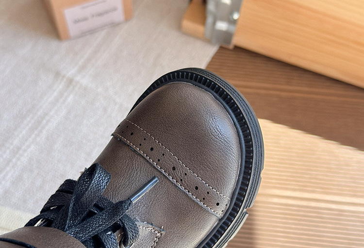 厚底ハイカットブーツ 女の子用 2025秋冬新作 おしゃれ メイラード風 レトロ風 パイルブーツ 裏起毛ショートブーツ