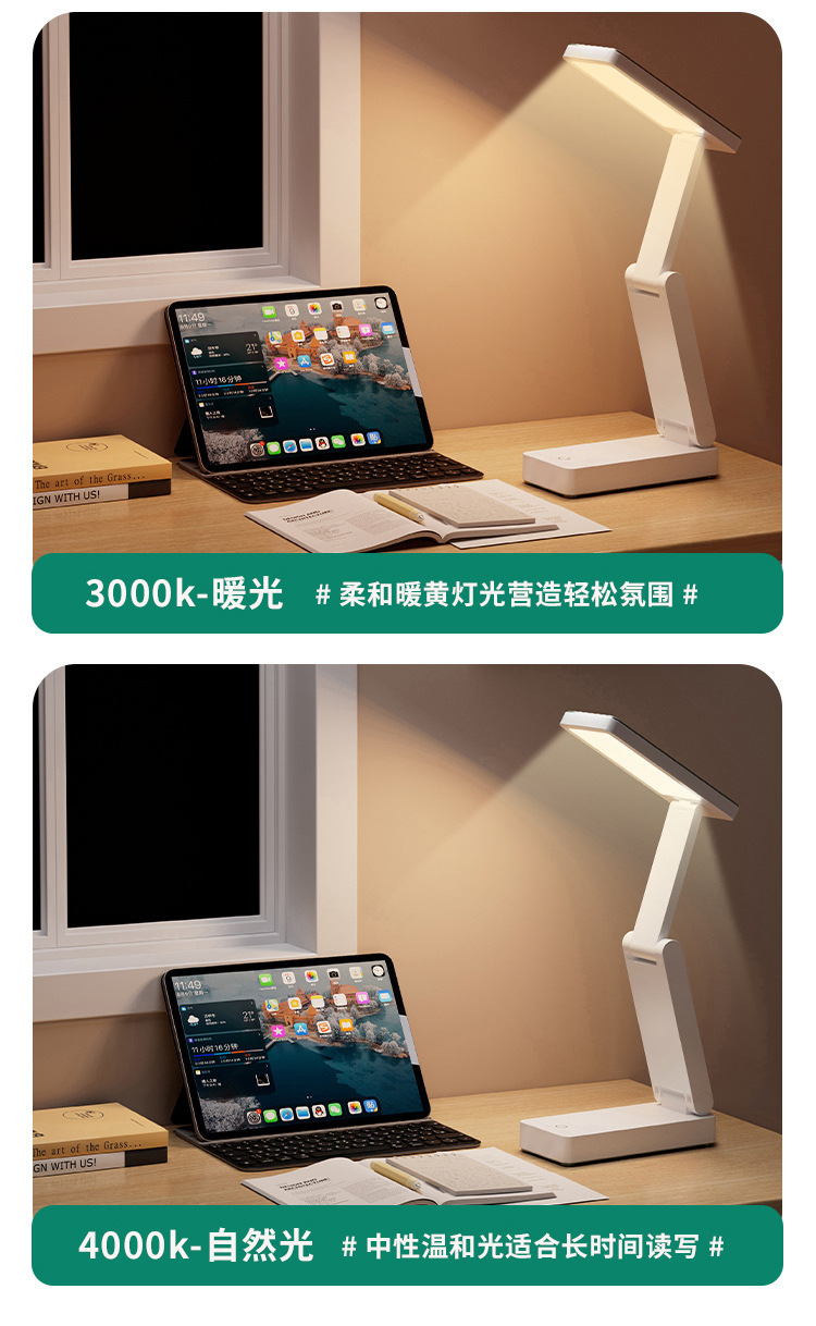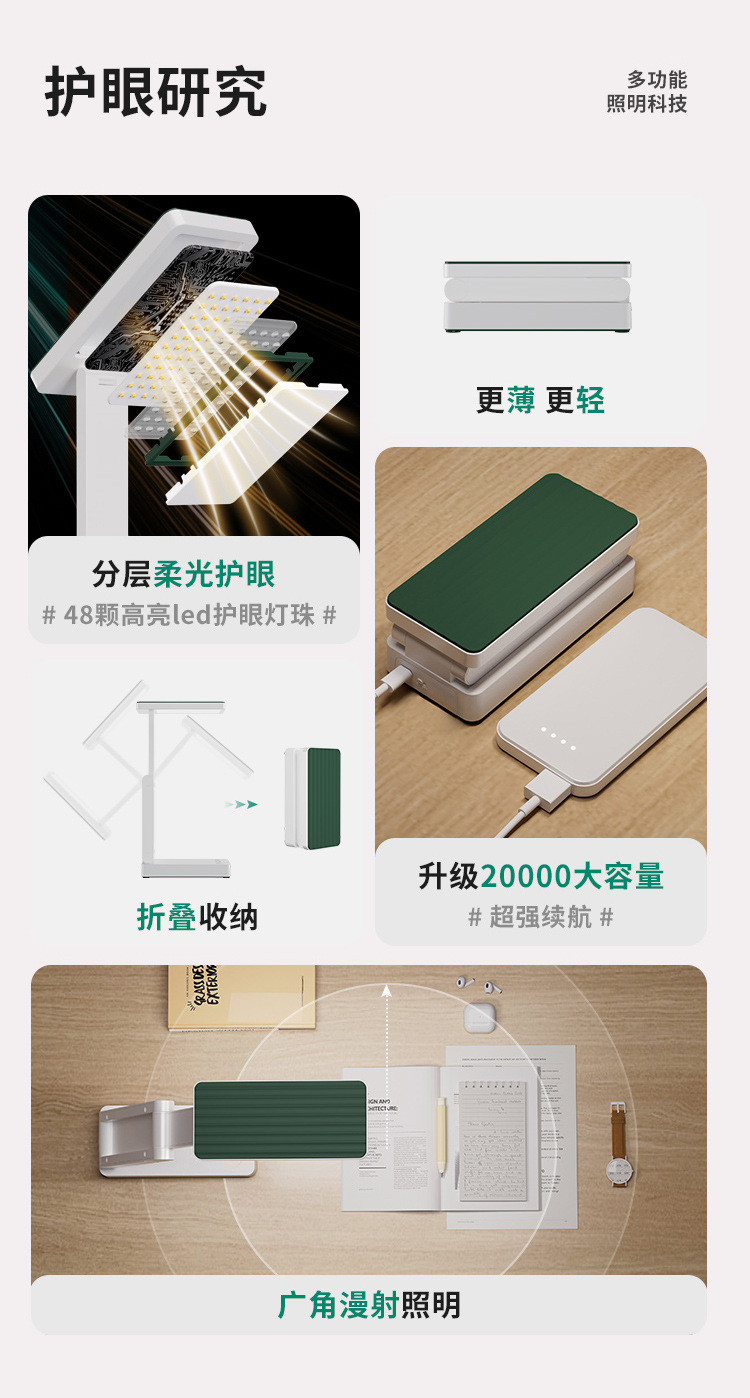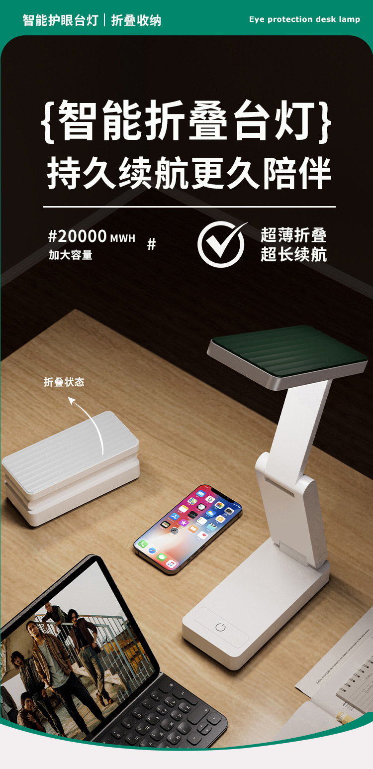 折叠台灯可充电式护眼灯学习用学生宿舍叠便携大容量超长续航台灯