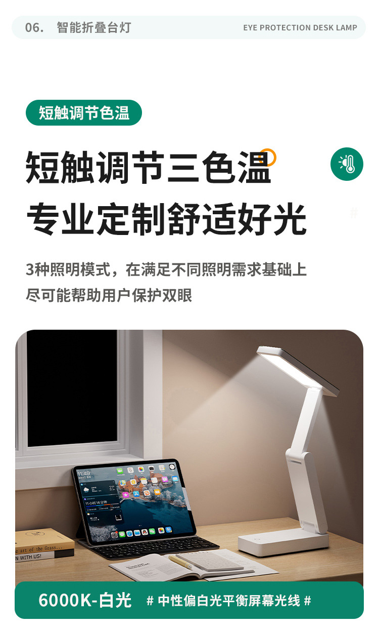 折叠式台灯学生专用护眼灯大学生宿舍书桌台灯阅读床头夜灯不插电