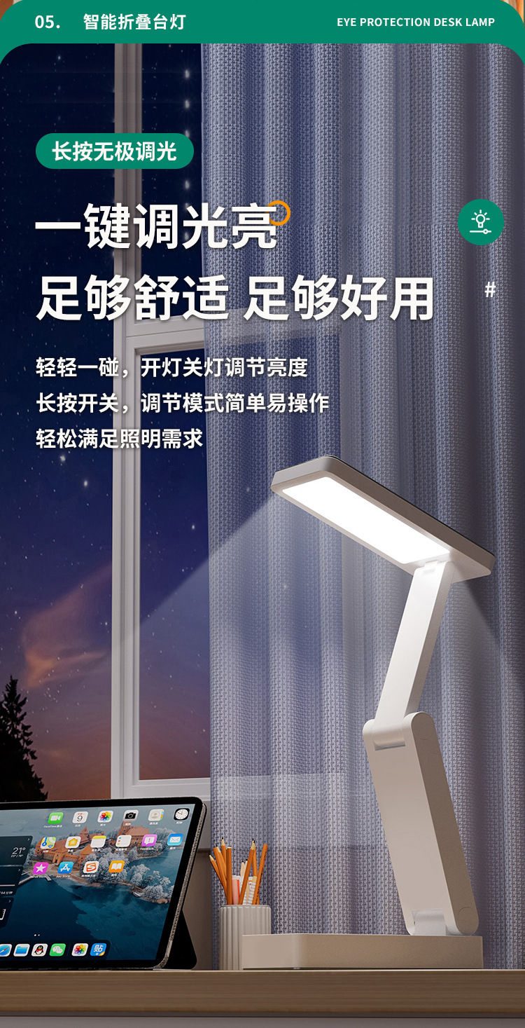 折叠LED台灯学生专用护眼灯智能充电插电台灯学习书桌卧室床头灯