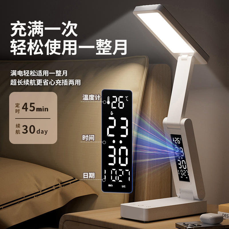折りたたみ LED 学習ランプ寮オフィスライティング学生寝室ベッドサイドランプ読書時計電源銀行テーブルランプ