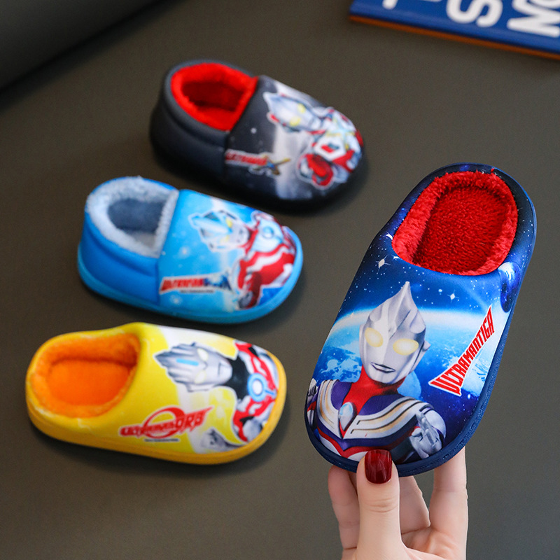 ウルトラマン新型子供綿スリッパホーム室内滑り止め漫画男の子女の子保温ぬいぐるみかわいい