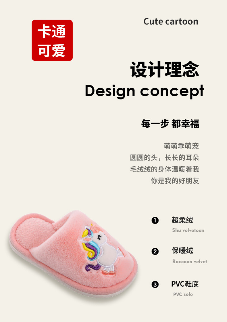 儿童棉拖鞋秋冬季宝宝室内拖鞋冬可爱家居男童女童小孩毛拖鞋防滑