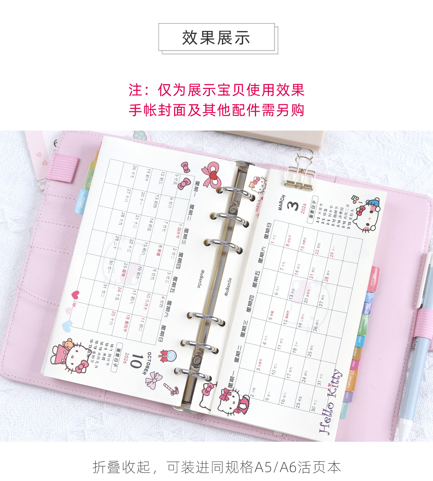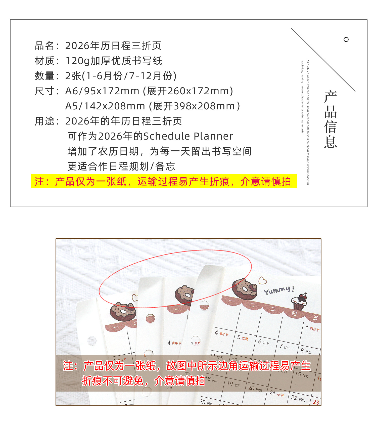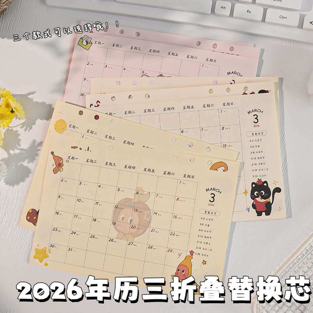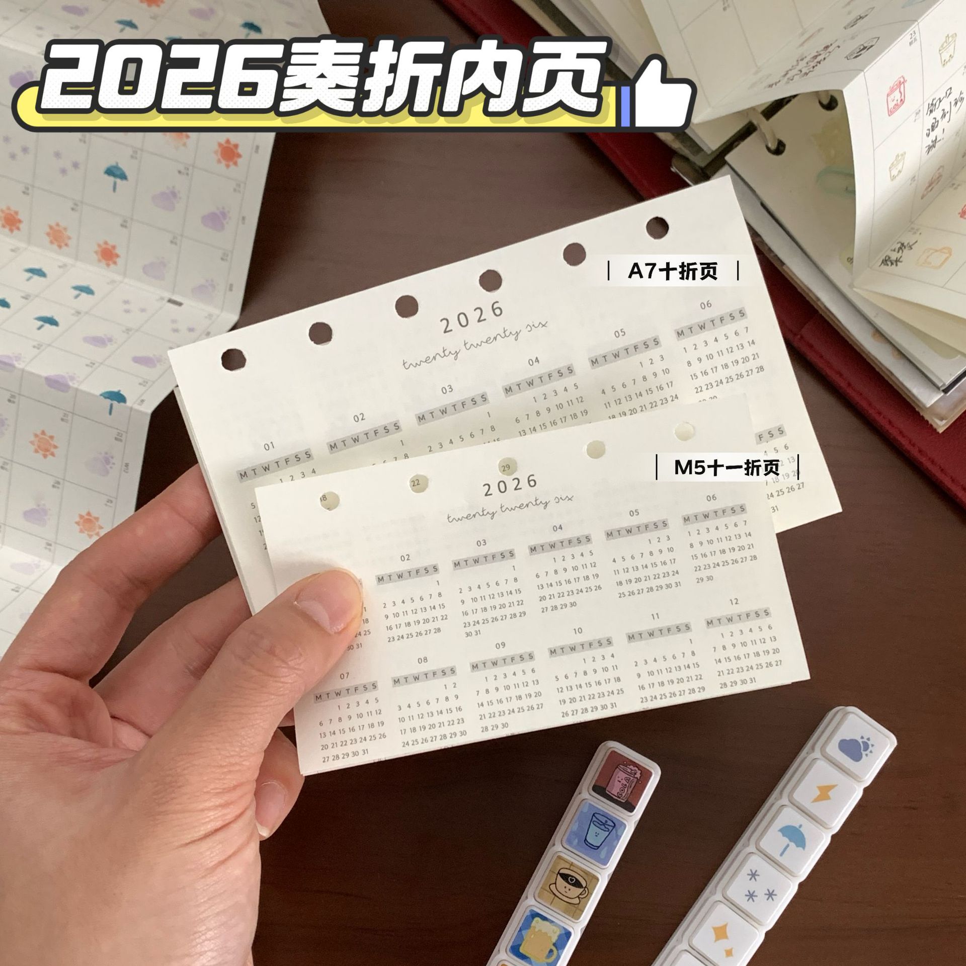 2026年奏折内页M5A7A6十折日历年历手帐活页本风琴替芯日程计划全
