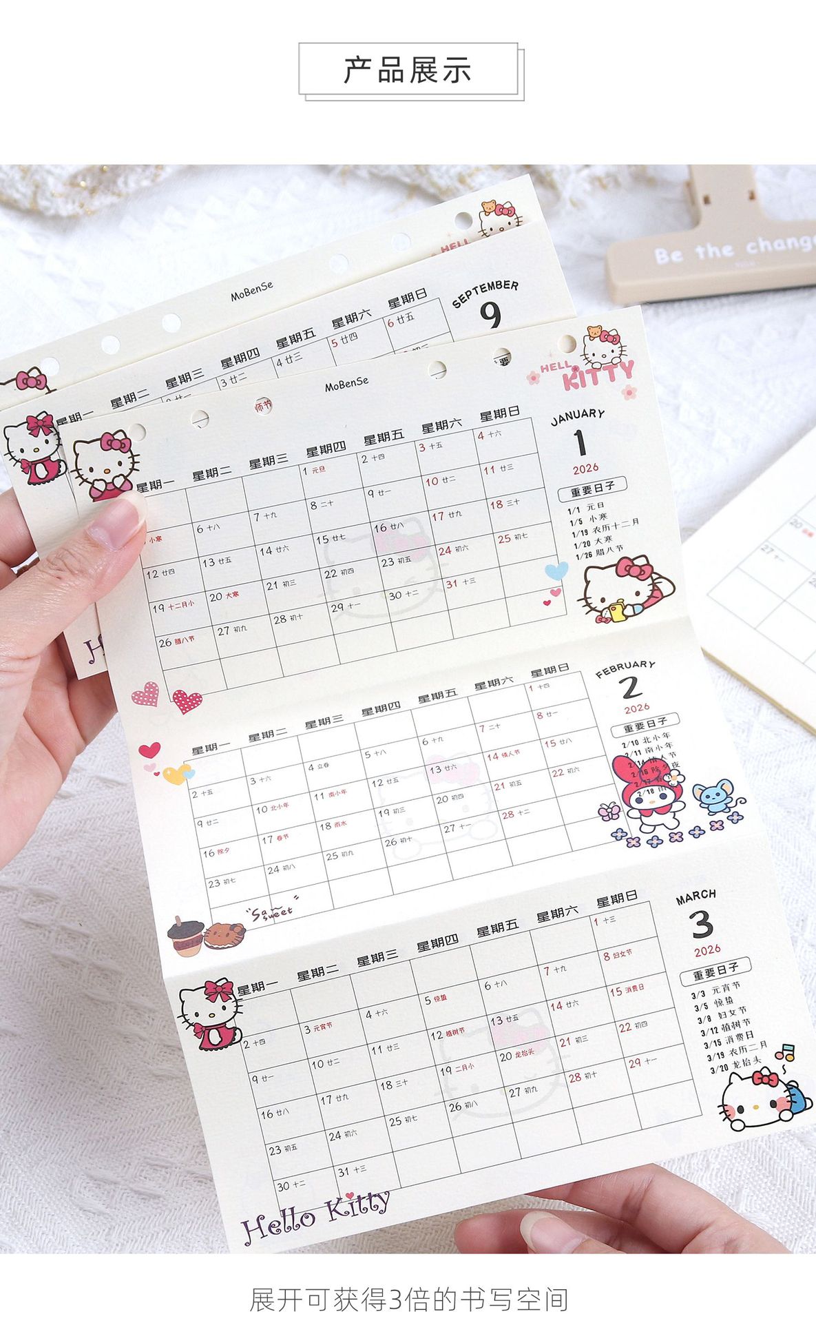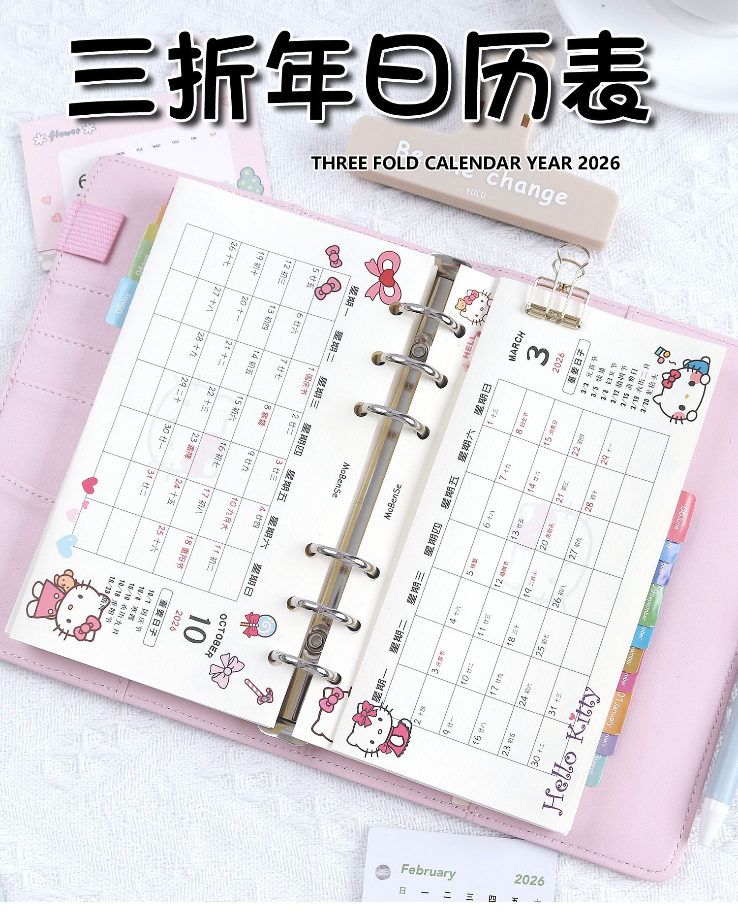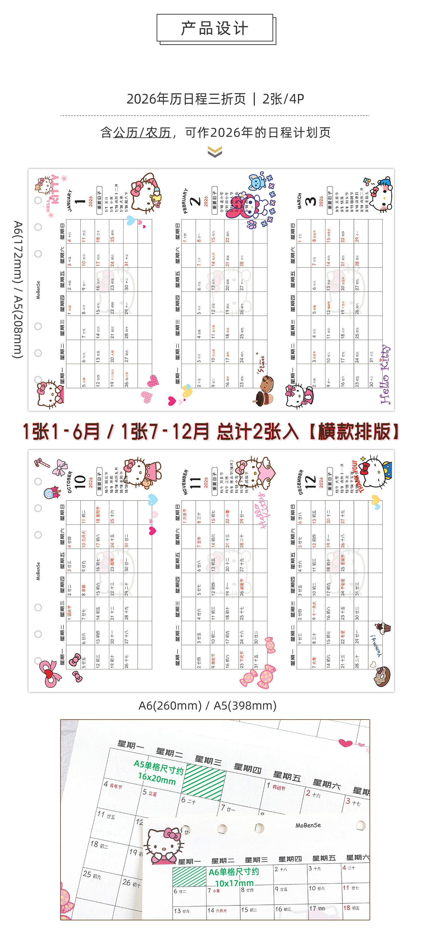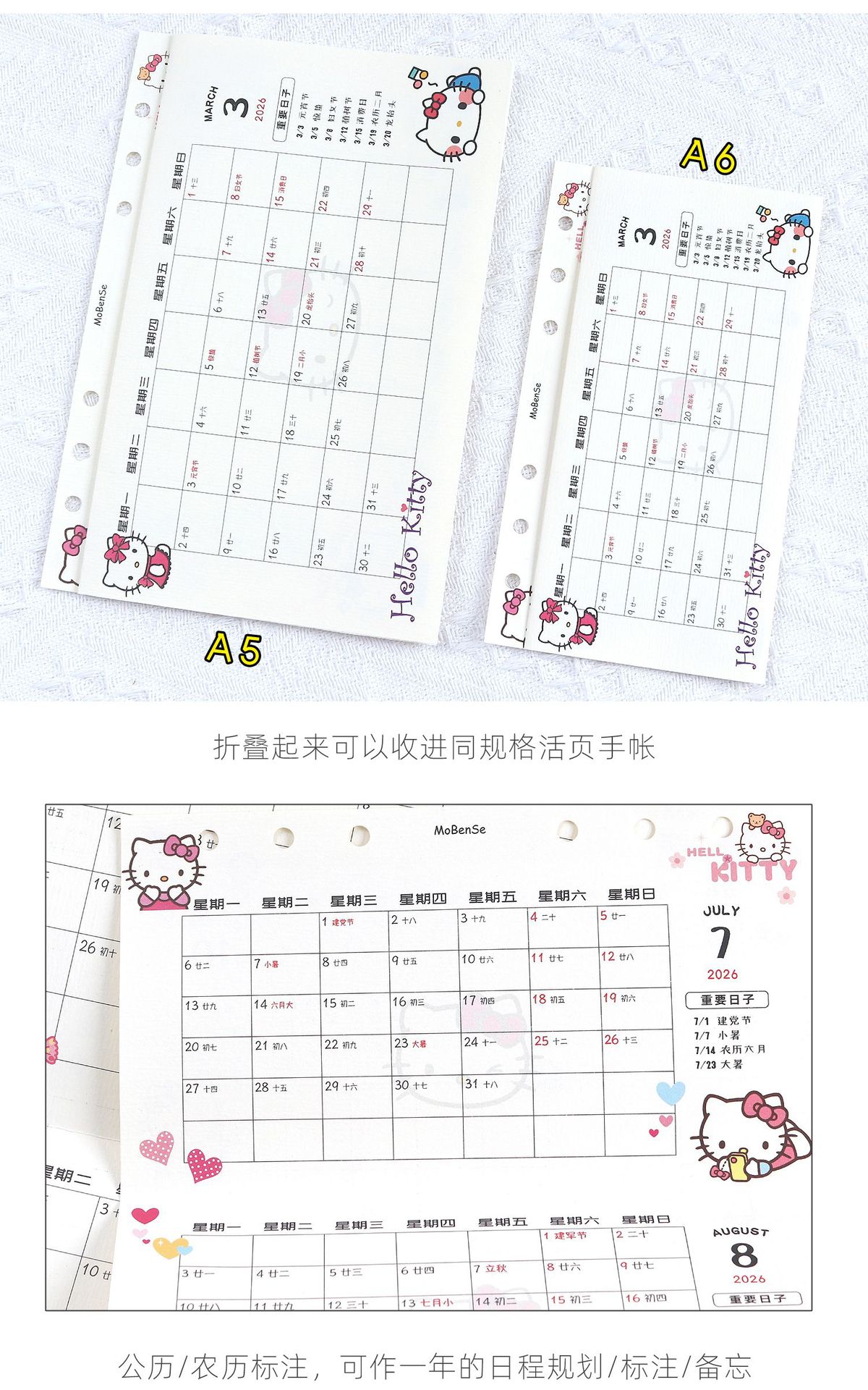 2026年奏折内页M5A7A6十折日历年历手帐活页本风琴替芯日程计划全