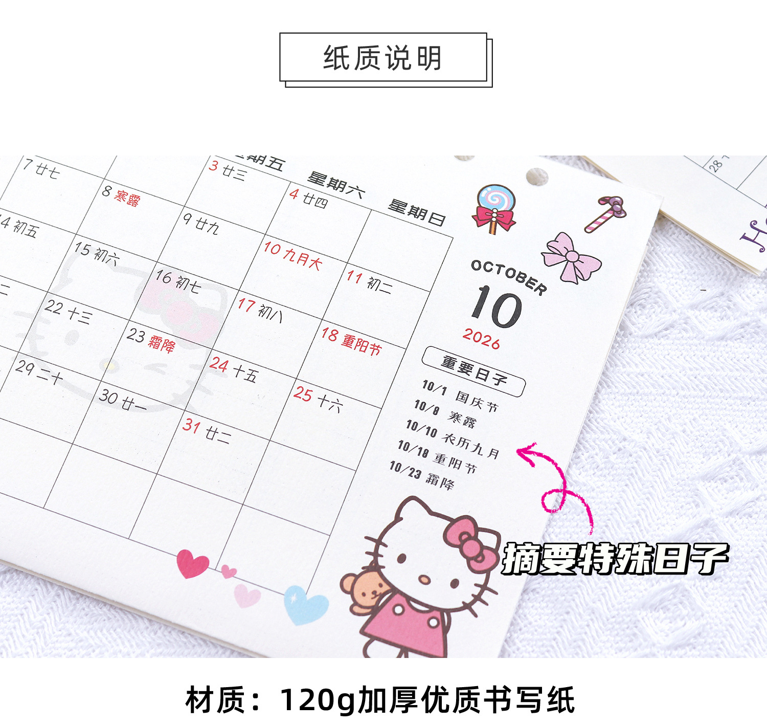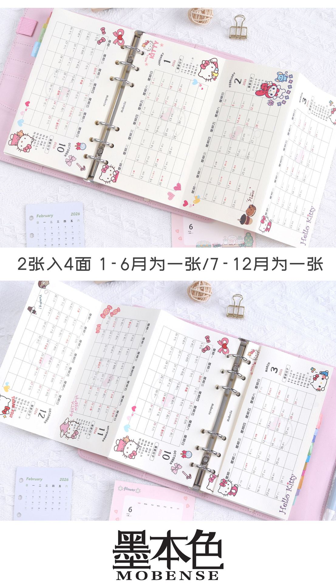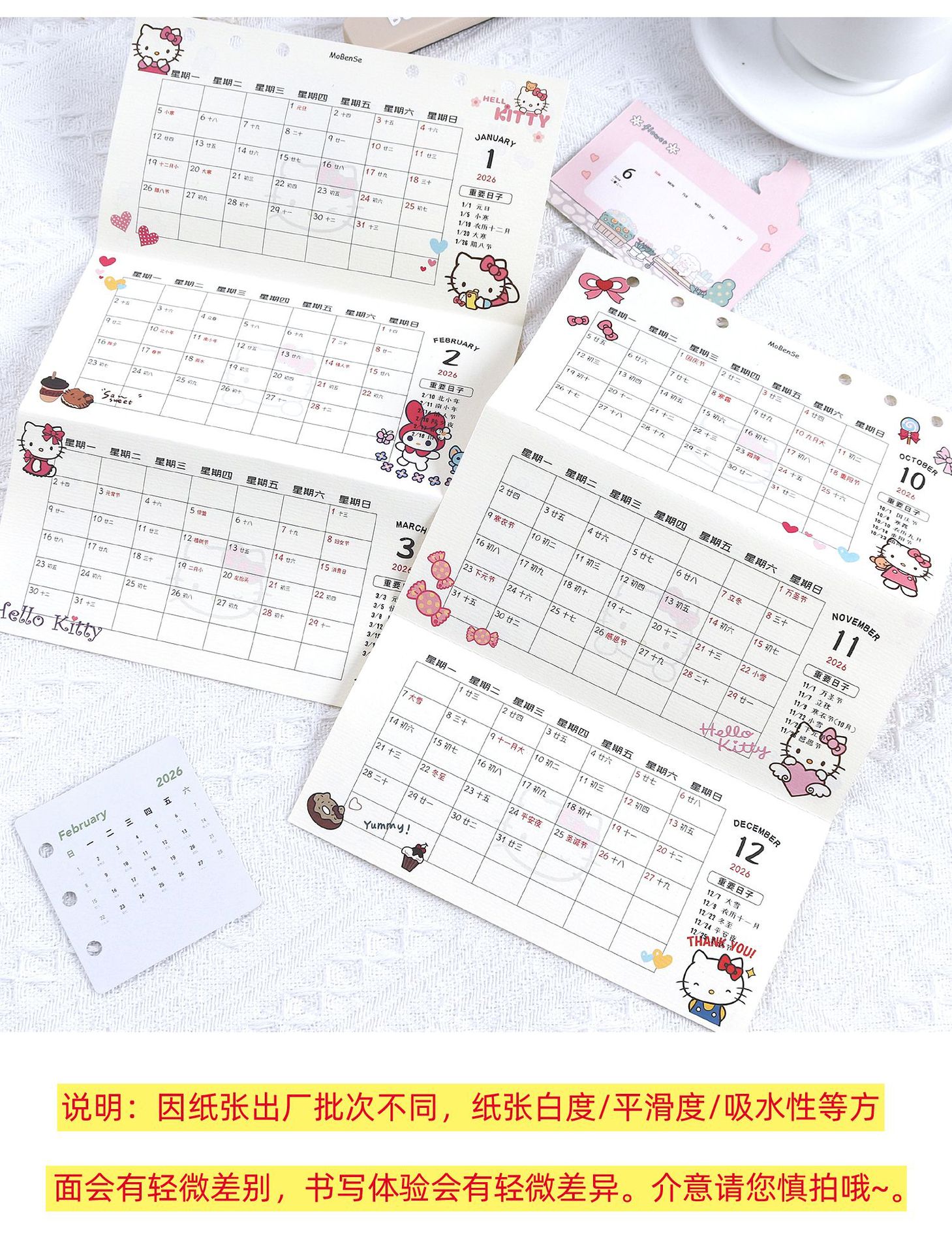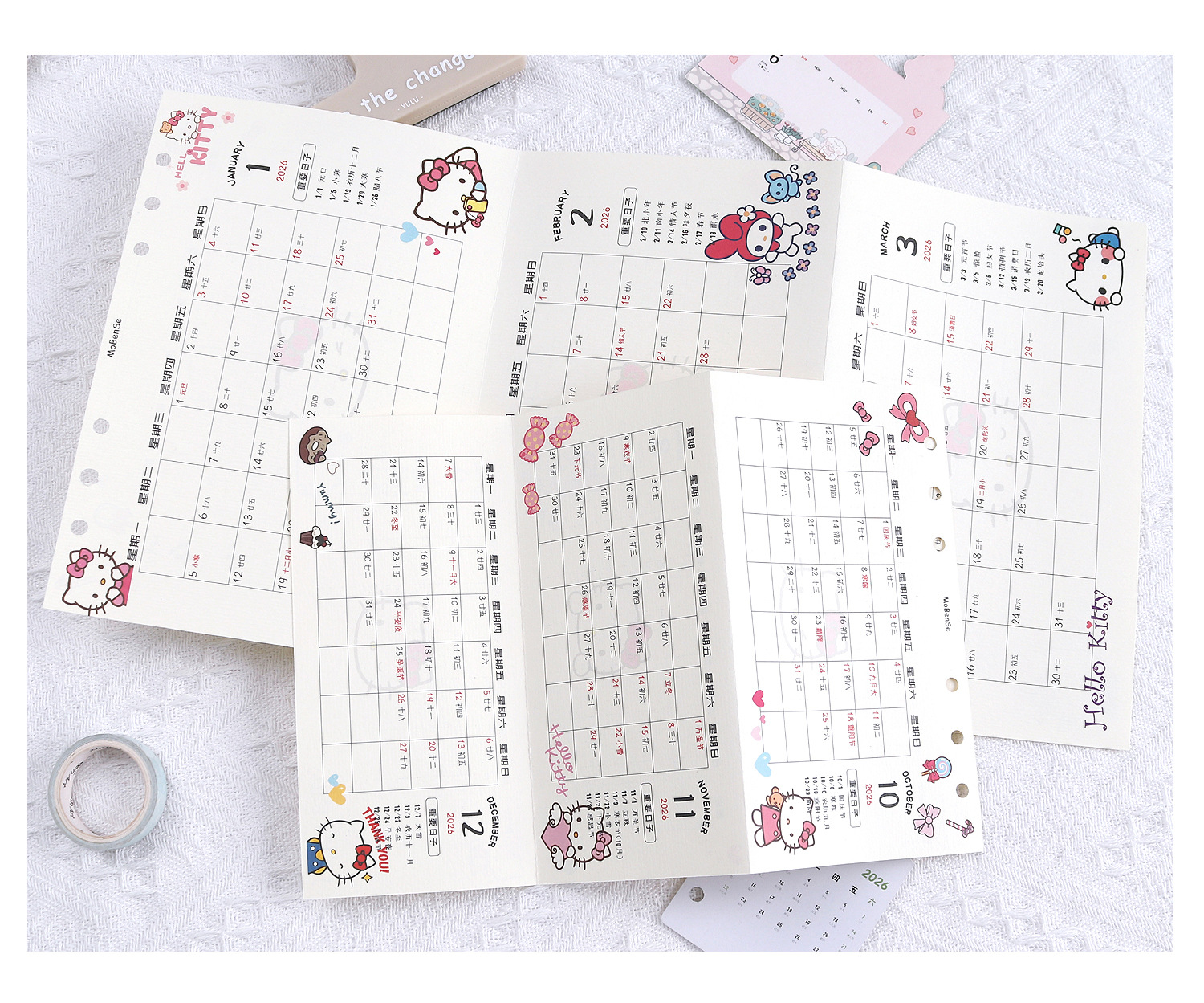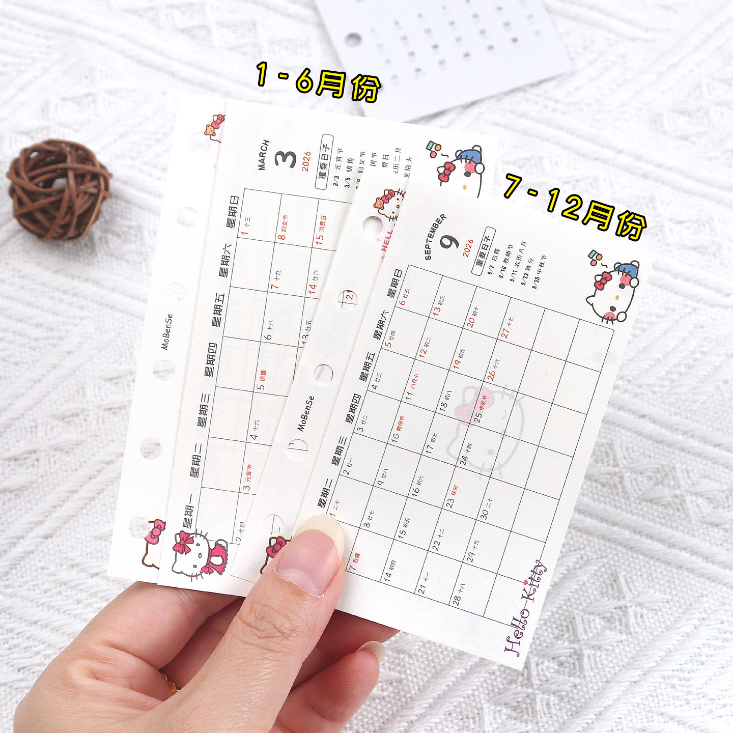 2026年新作カレンダー奏折内ページm5穴あき内芯ルーズリーフ交換用内芯0% off年月間プランニングチェックインブック