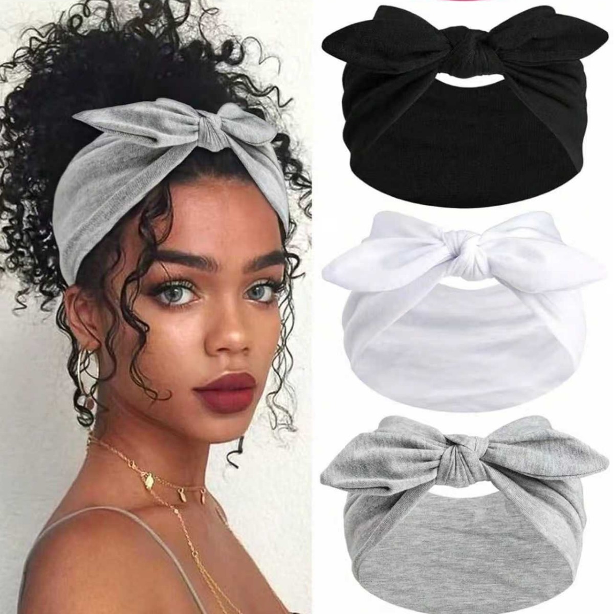 欧美跨境新款蝴蝶结纯色发饰时尚运动简约发带化妆洗脸发束
