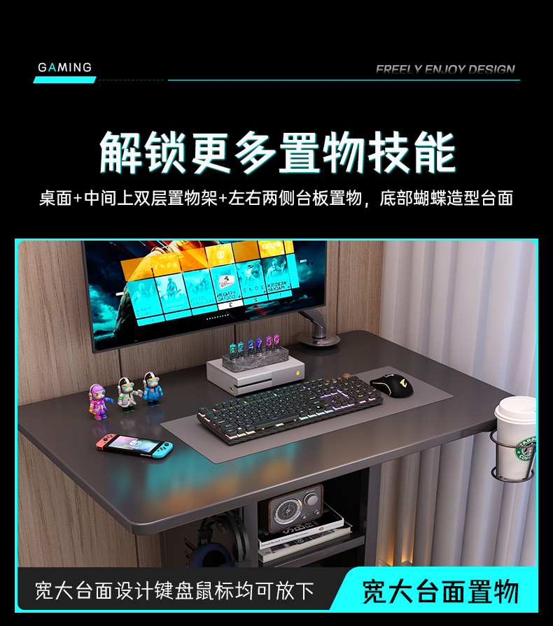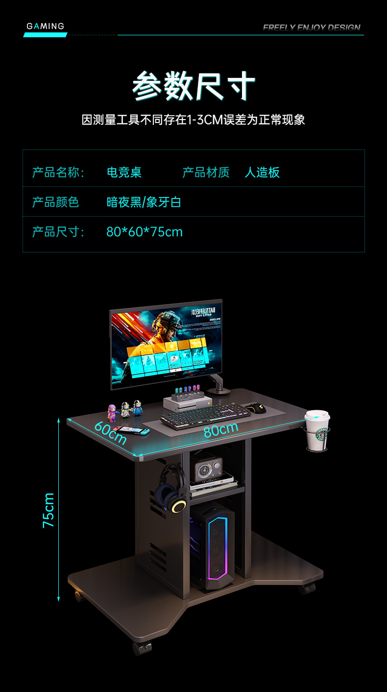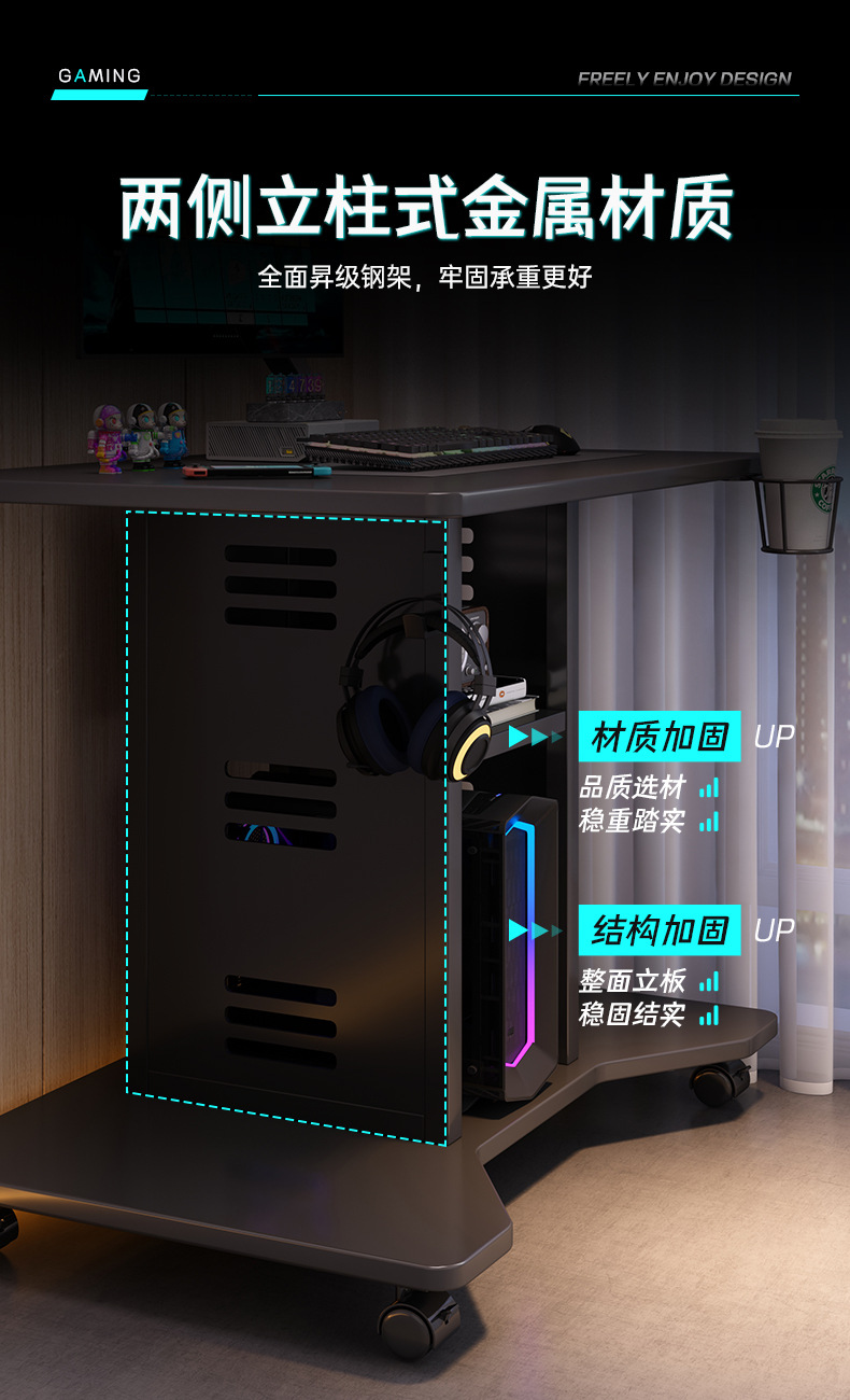 移动电脑桌台式电竞桌可放主机迷你卧室家用小型床边桌单人工作台