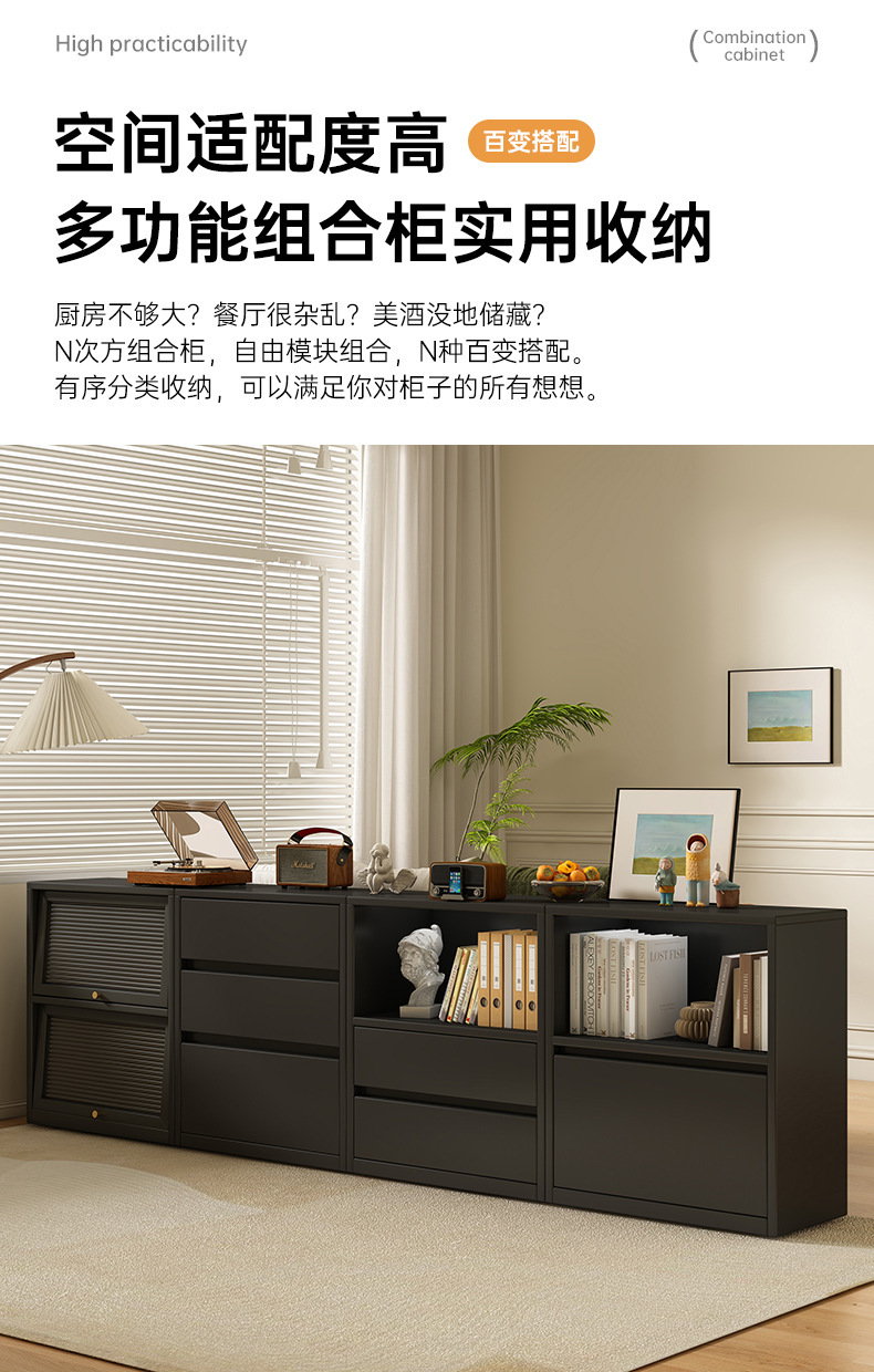 家用书架落地置物架客厅轻奢黑色收纳柜多功能组合柜储物书柜矮柜