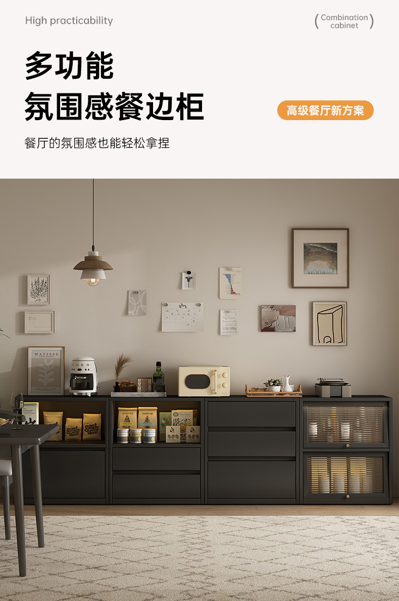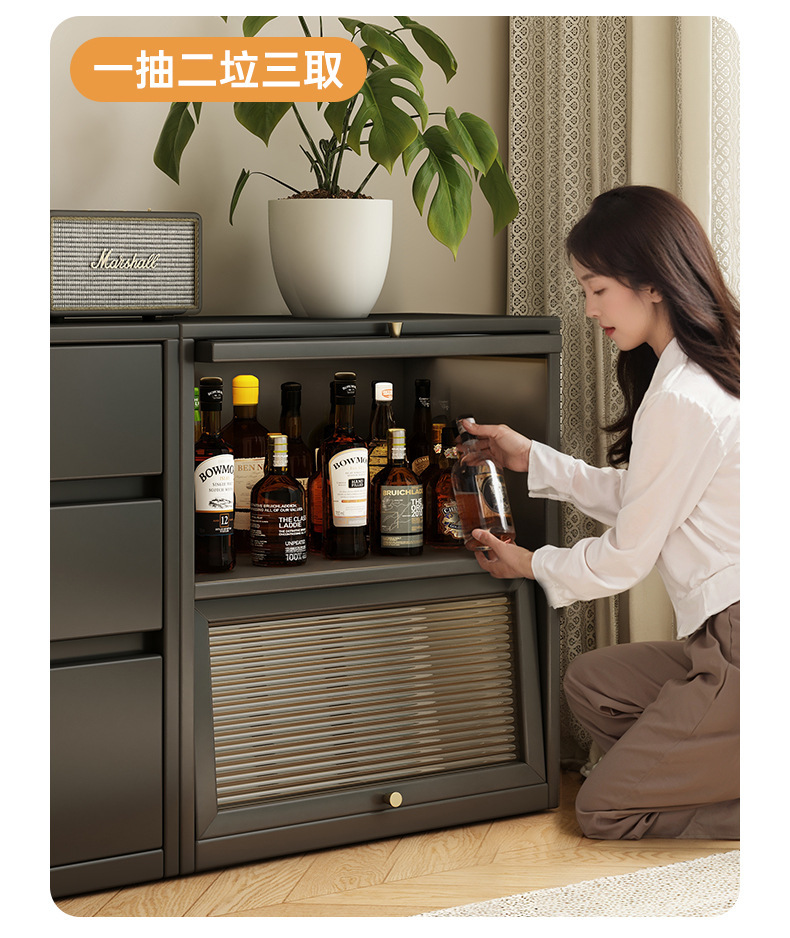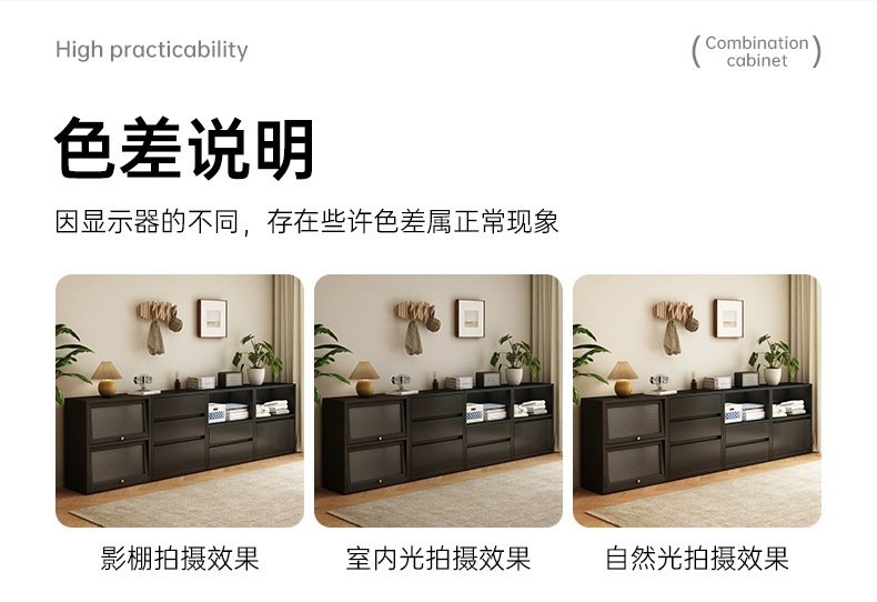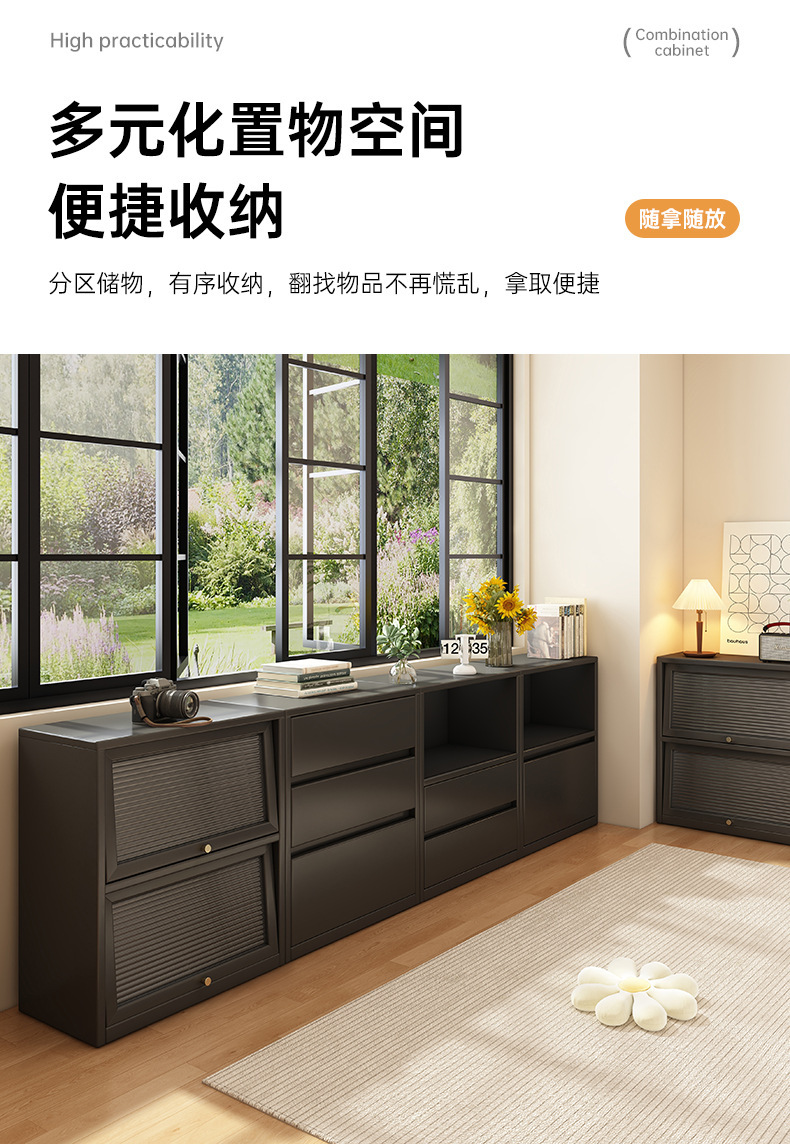 书柜收纳柜落地靠墙矮柜轻奢复古组合柜客厅家用储物柜边柜置物柜