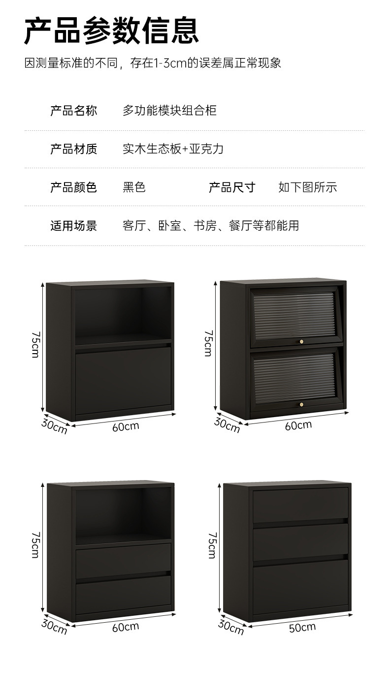 颜色 【12mm实木生态板双抽屉边柜】烟霞雪松木色60*30*75cm,【12mm实木生态板可移动柜门】烟霞雪松木色60*30*75cm,【12mm实木生态板双抽屉边柜】高级轻奢黑色60*30*75cm,【12mm实木生态板可移动柜门】高级原木色60*30*75cm,【12mm实木生态板4格柜】高级轻奢黑色75*30*75cm,【15MM加厚实木生态板双高透移门】烟霞雪松木色100*30*75CM