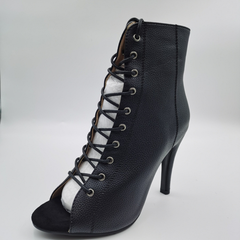 欧美系带鱼嘴凉靴女镂空短靴heels鞋爵士舞蹈鞋跳舞绑带高跟鞋