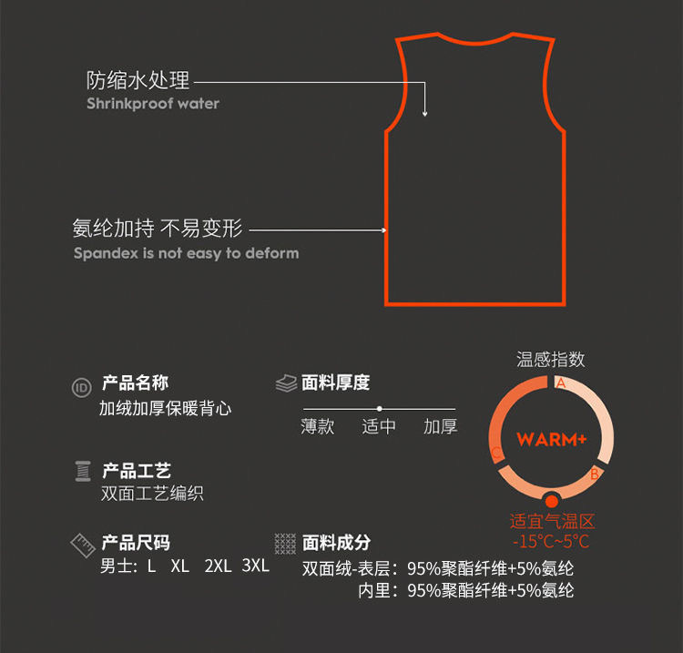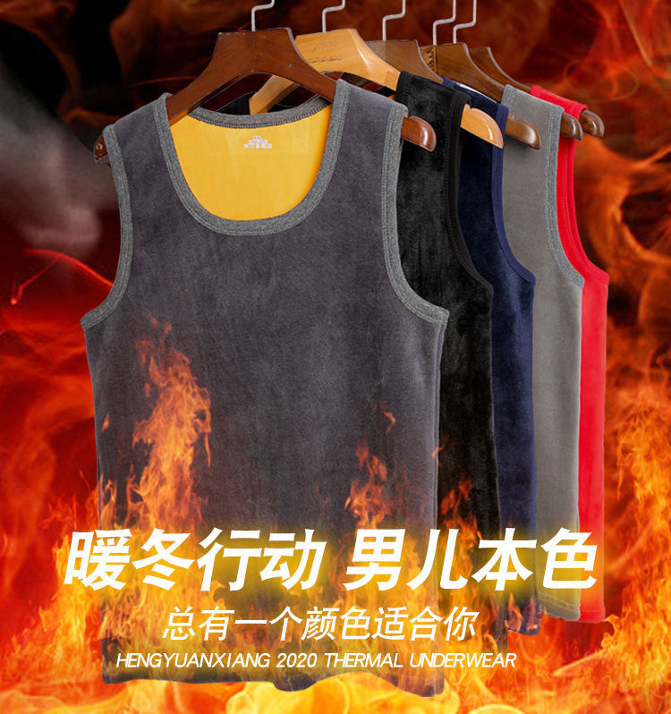 双面绒保暖背心男士加绒加厚内衣马甲贴身打底衫内穿上衣防寒秋冬