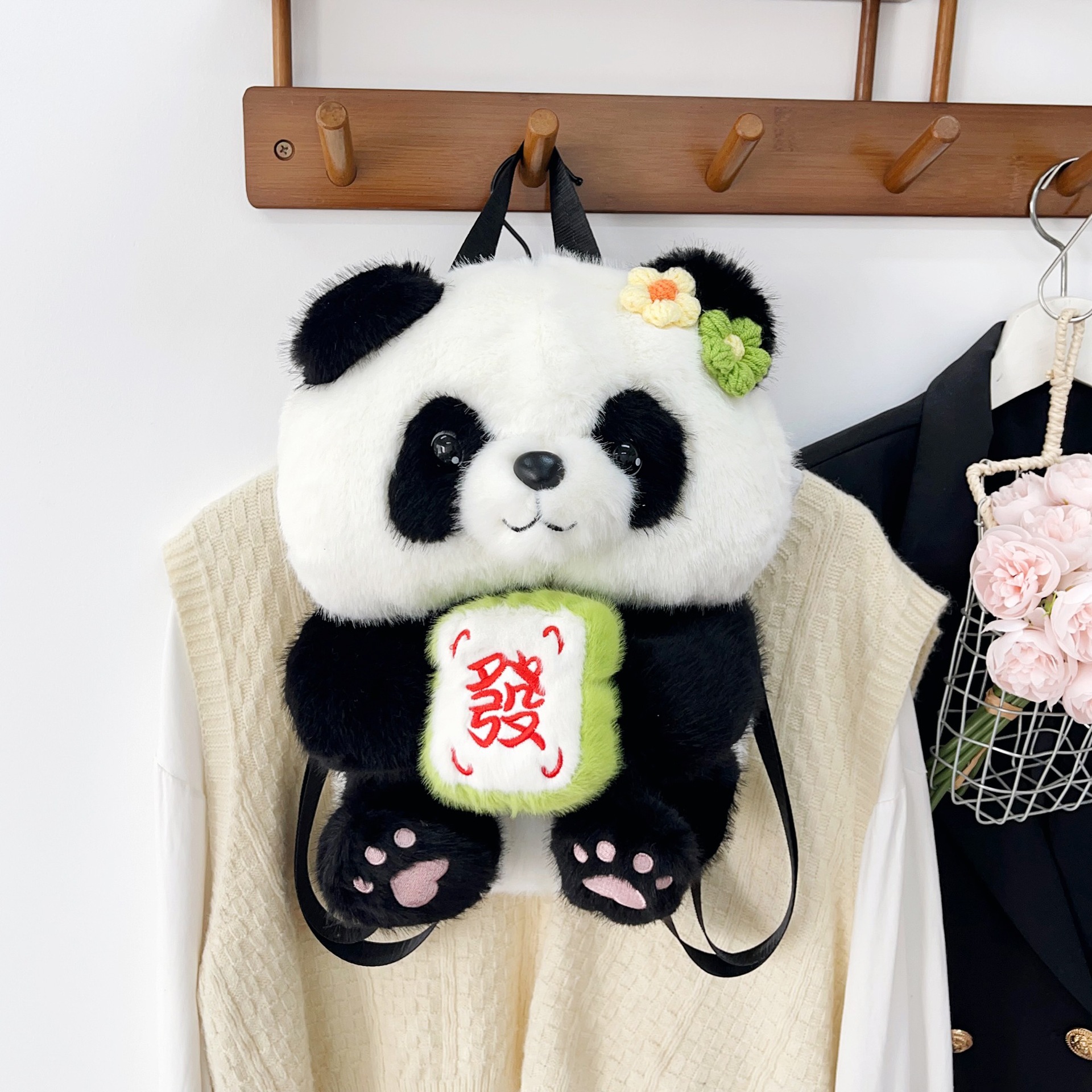 新しいかわいいパンダフラワーバックパック子供の漫画デザイン抱きしめるアップルフォーチュンパンダ人形ぬいぐるみバッグ