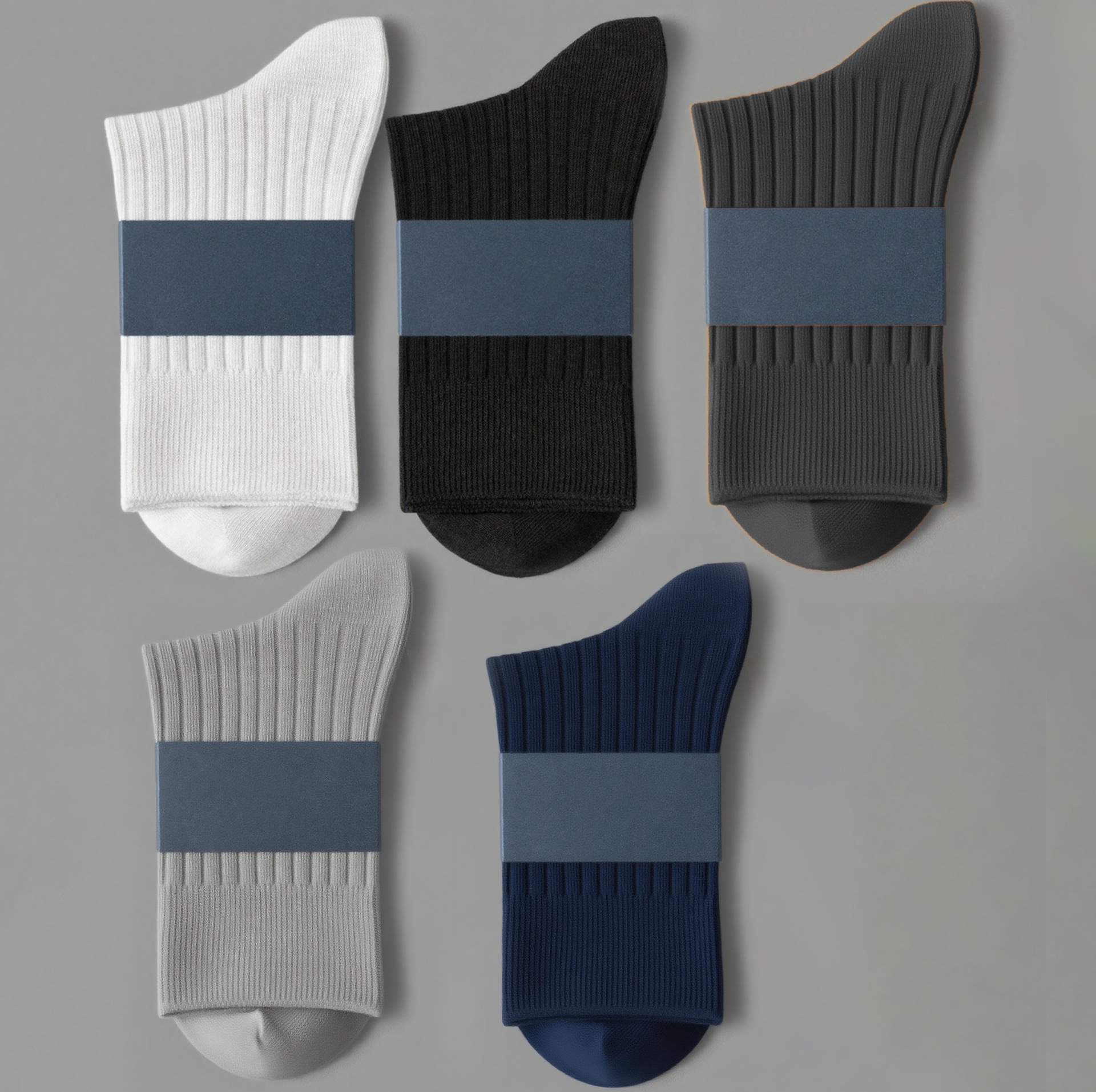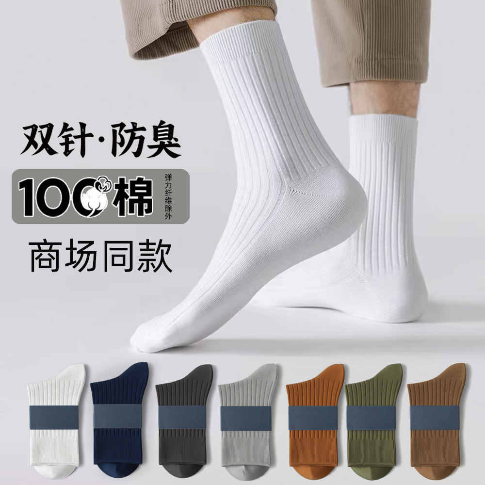 双针男士商务中筒袜吸汗透气百搭纯色袜抗起球无线头加厚运动长袜