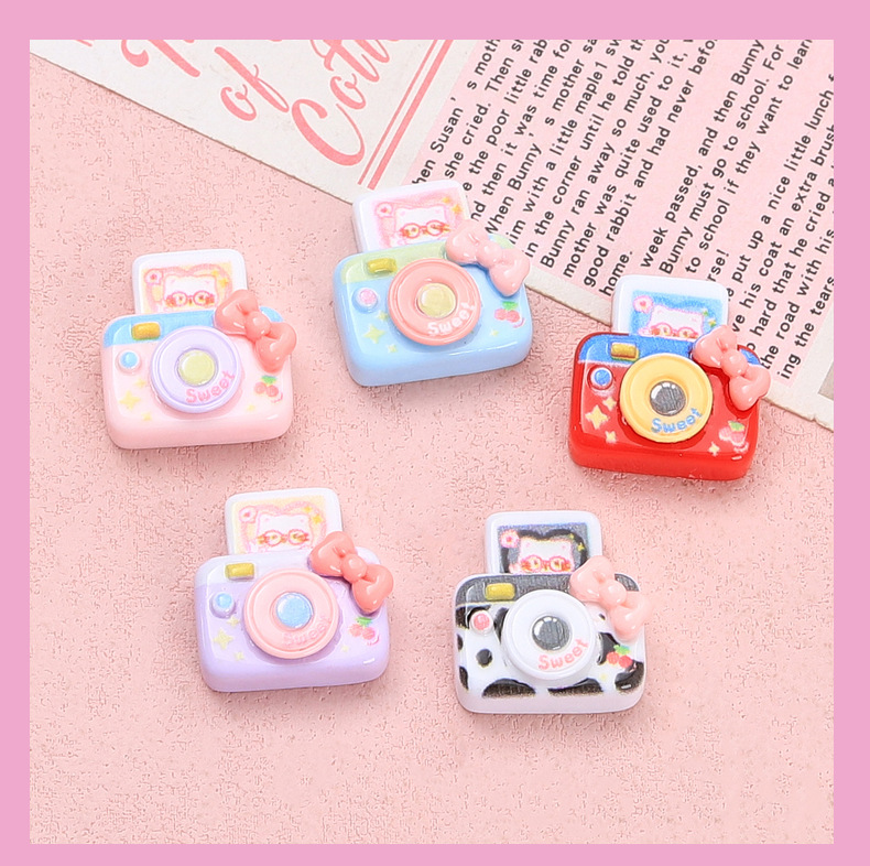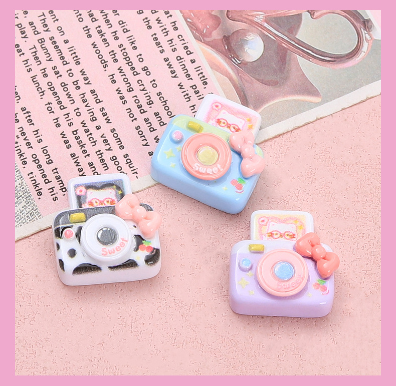 卡通小猫多色相机创意手工diy奶油胶树脂配饰小配件饰品材料批发