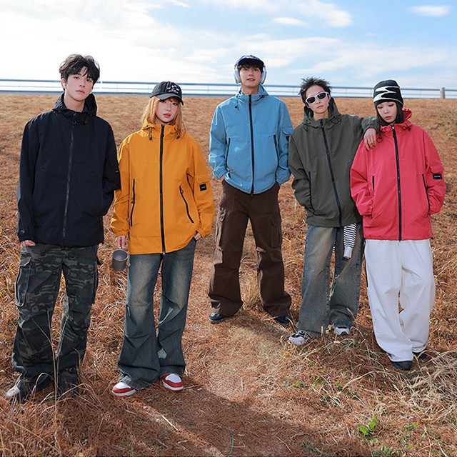 J90 春と秋の男性と女性の同じスタイルのカップルアメリカンルーズ防風ジャケットアウトドアトレンディなフード付きジャケット