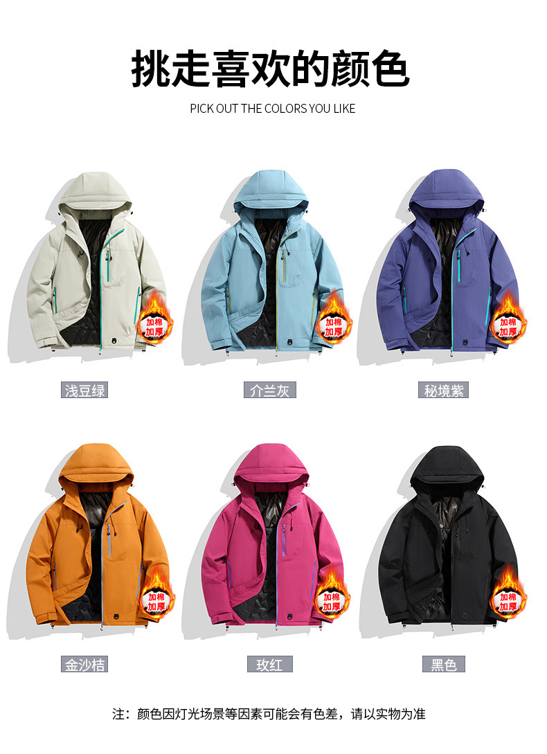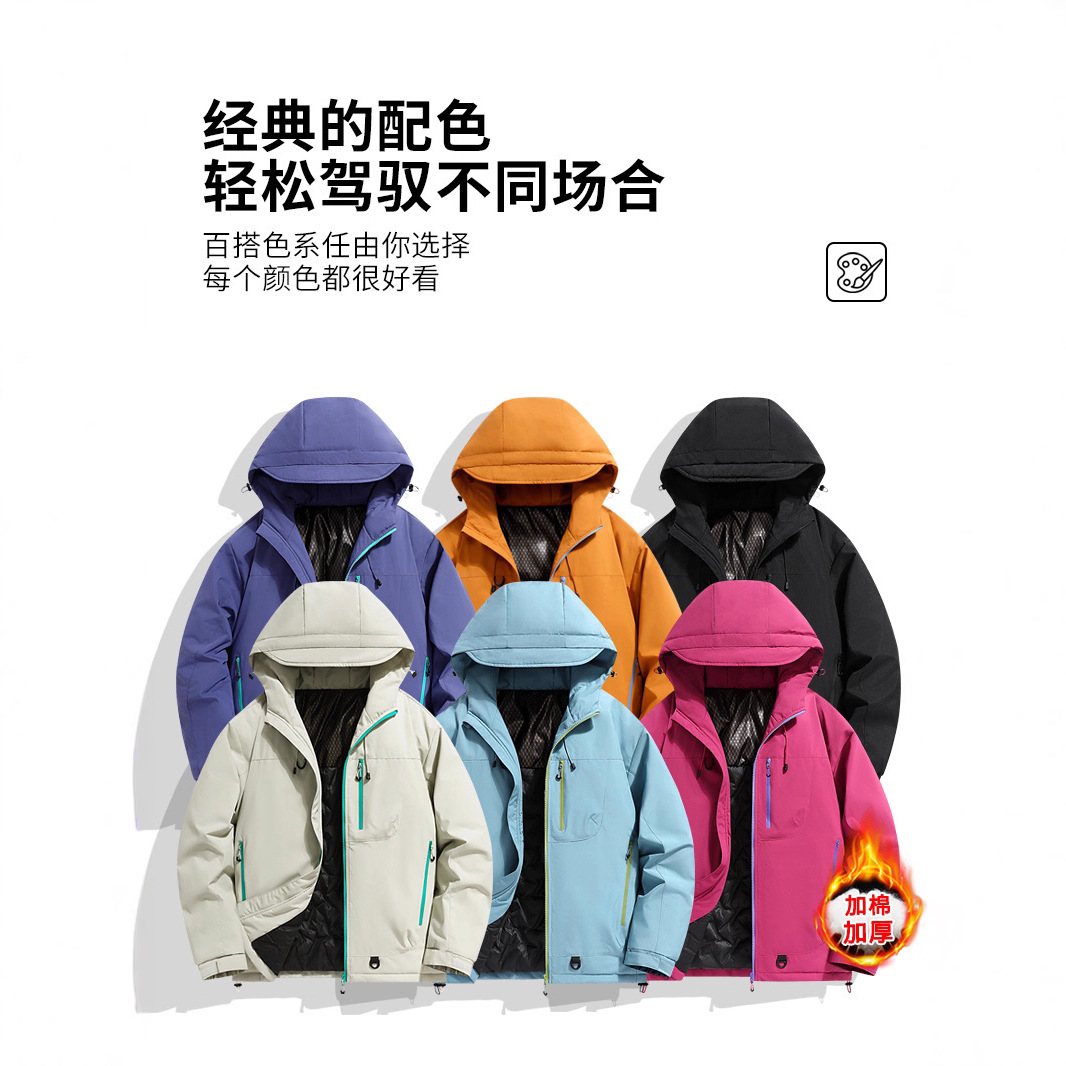 025男女同タイプのアウトドアジャケットは帽子を外すことができます。