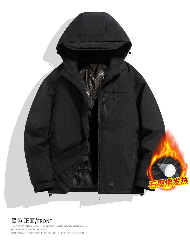 J9911爆款升级款石墨烯冲锋衣男秋冬款加绒加厚保暖服防风防水