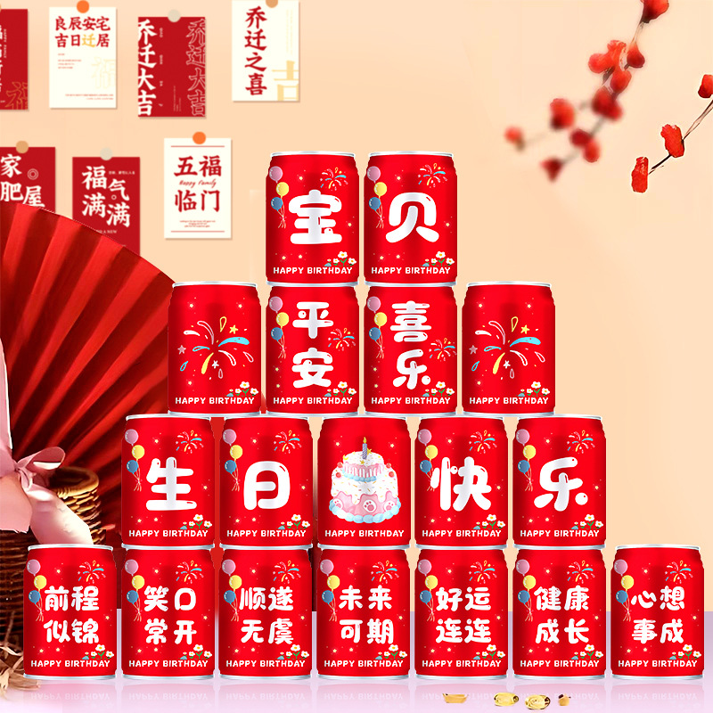 誕生日おめでとうコーラシール子供男の子女の子缶赤ちゃん歳百日宴会儀式感装飾品