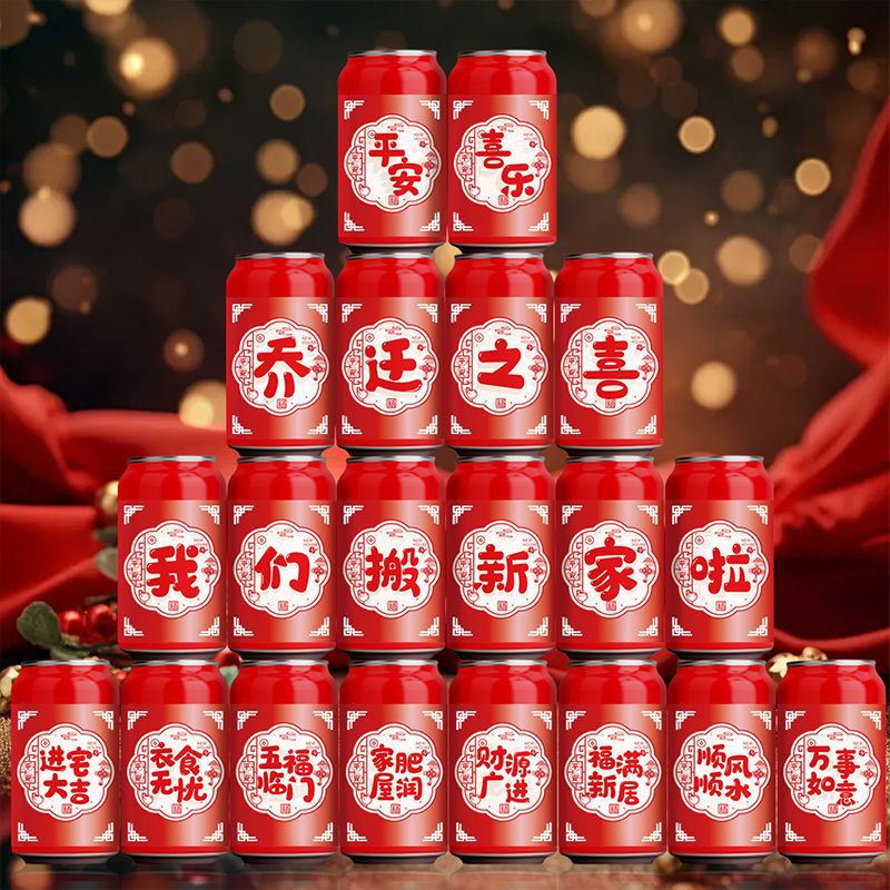 乔迁之喜祝福寓意水果干果可乐旺仔饮料贴纸鸡蛋封口贴装饰布置品