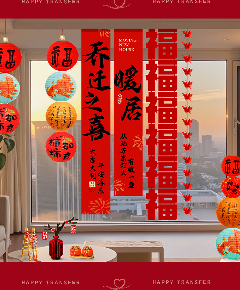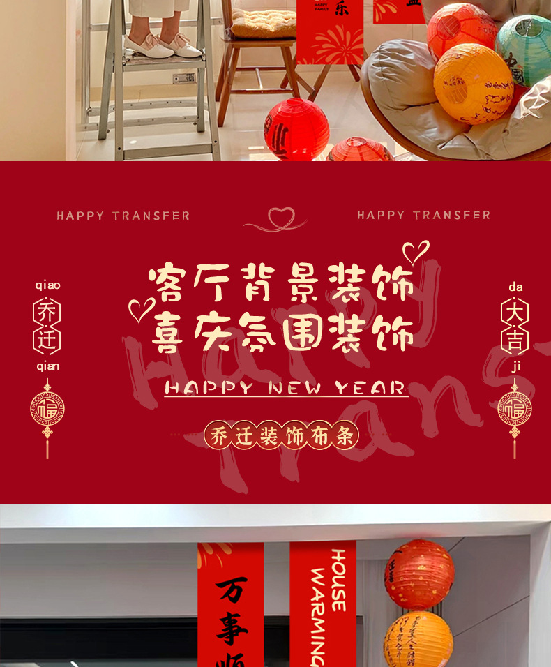 乔迁之喜装饰挂布条幅新居布置新房搬家入宅仪式用品全套新款拉花
