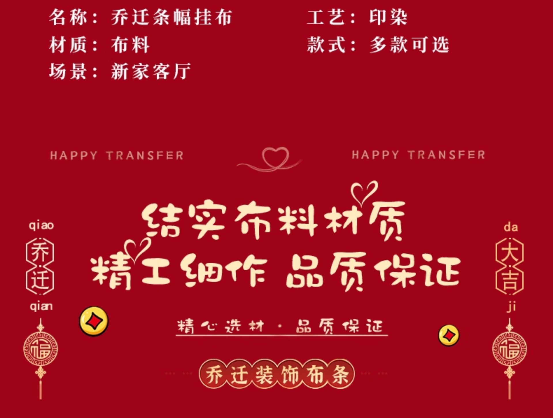 乔迁之喜装饰条幅挂布新居客厅场景布置新房搬家入宅仪式用品全套