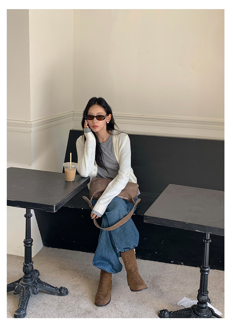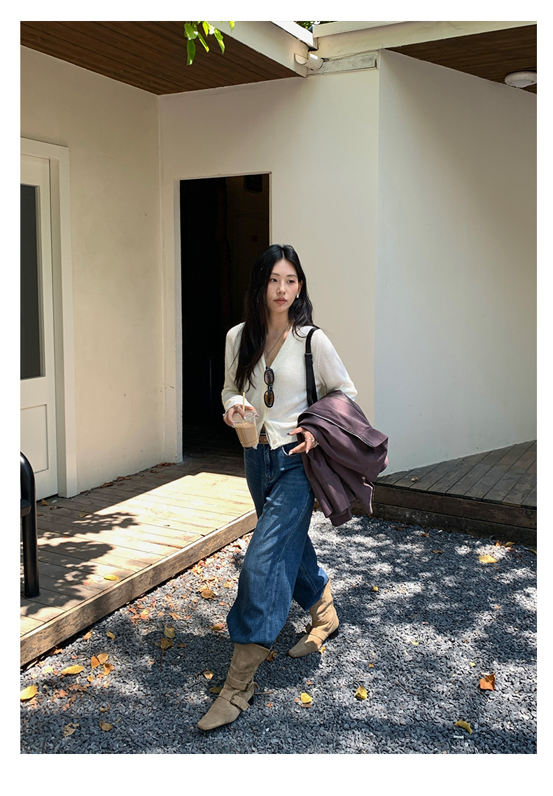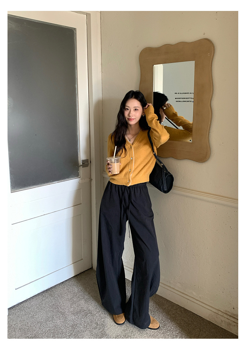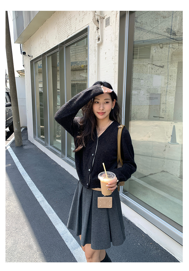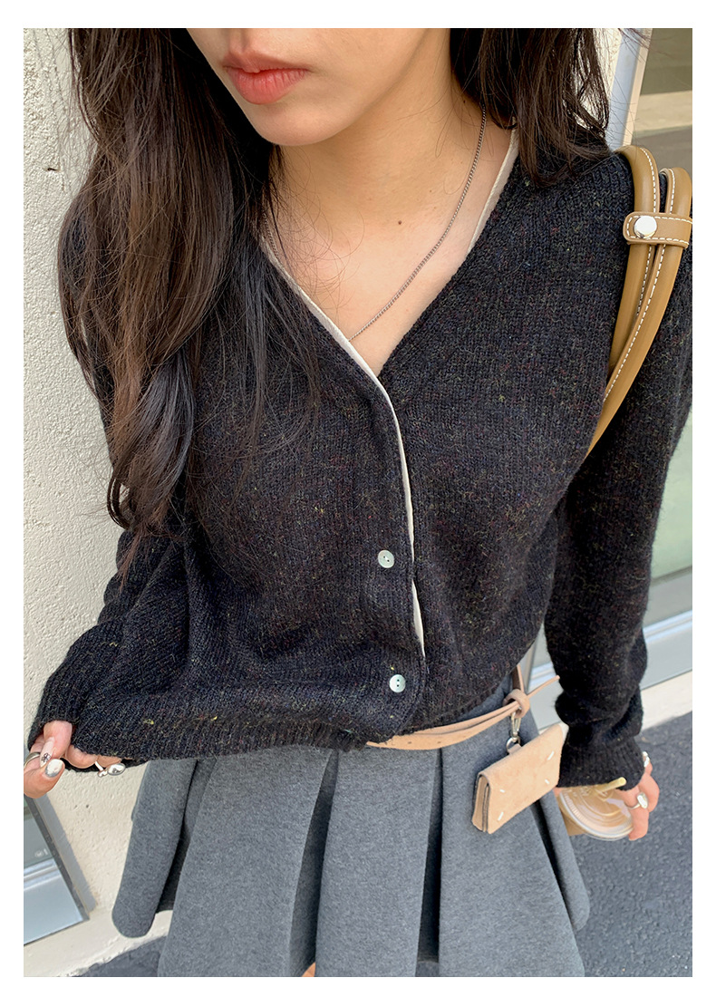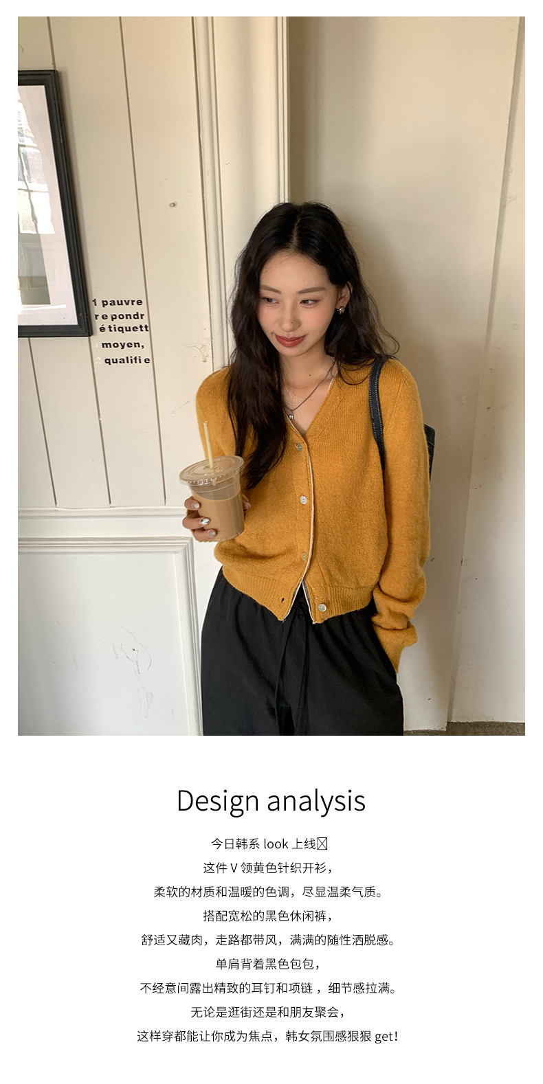 广州黄峥早秋V领针织开衫女秋季新款宽松慵懒风毛衣外套潮530070