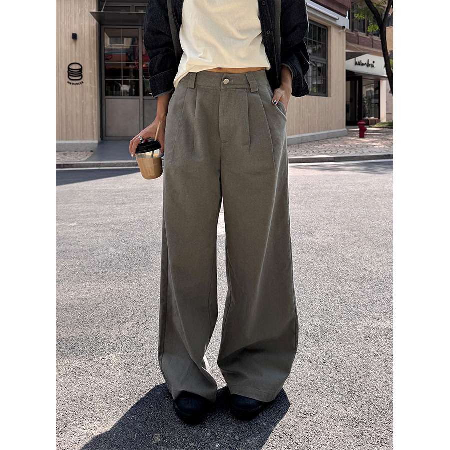 广州黄峥复古宽松休闲镰刀裤女韩系慵懒高腰小众设计感长裤530787