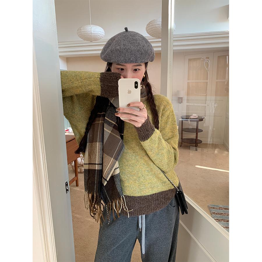 黄峥设计感拼色高领毛衣女冬季慵懒风软糯打底内搭针织上衣541167