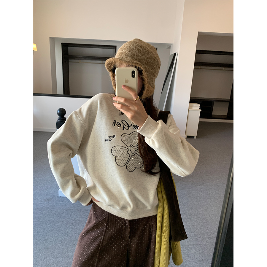 黄峥韩系钉珠立体刺绣加绒卫衣女冬季休闲百搭长袖保暖上衣541128