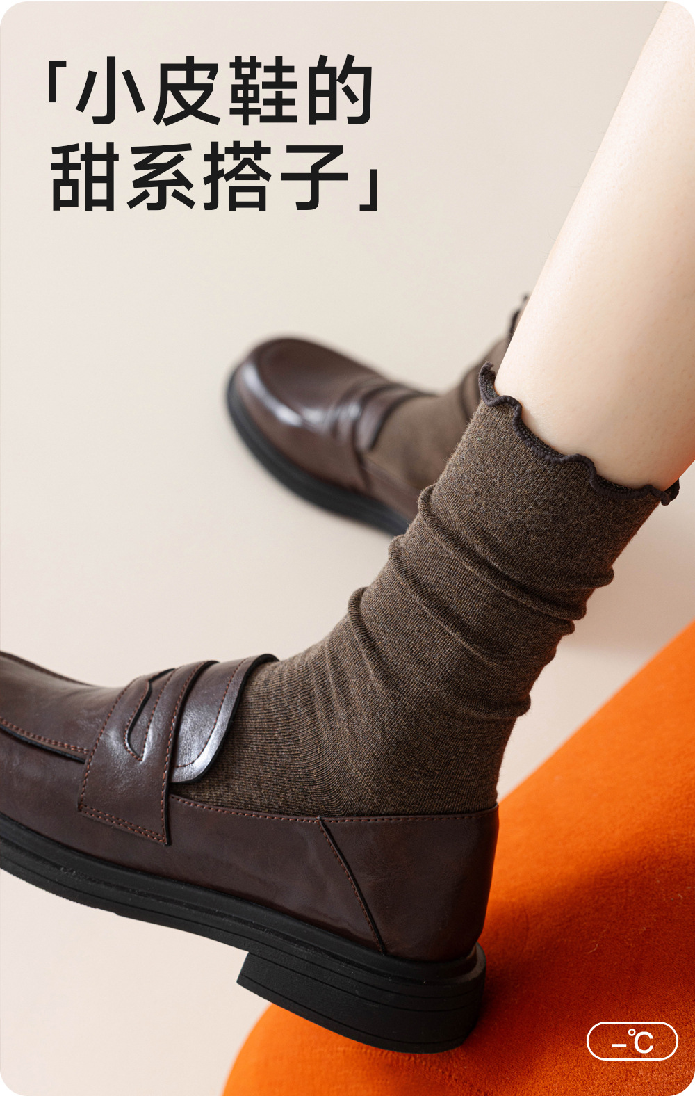 卷边堆堆袜子女款秋冬季纯棉中筒袜配小皮鞋棕咖色美拉德长袜